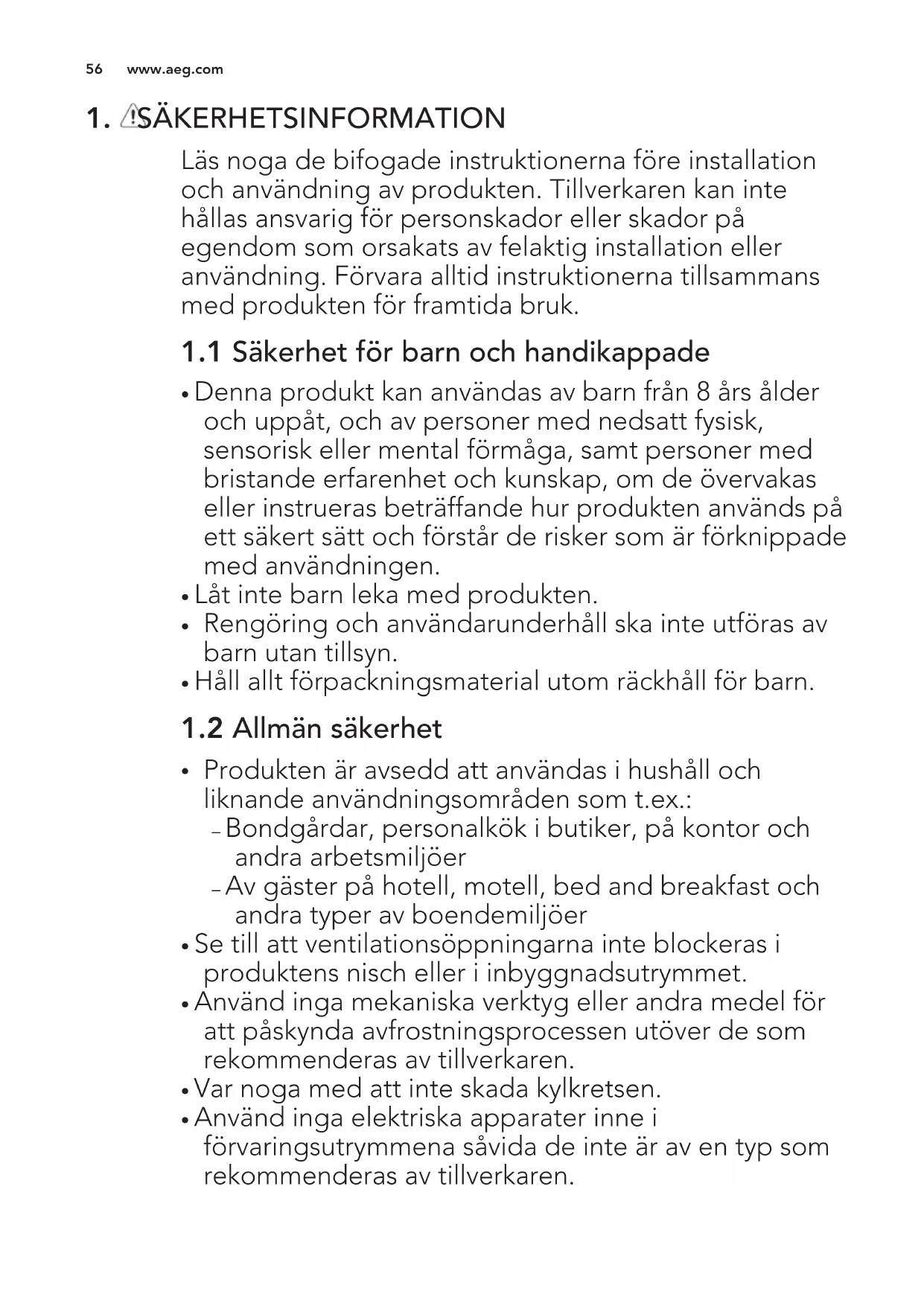 Tack för att du valt denna produkt från AEG. Vi har skapat den så att du ska kunna få felfritt resultat i många år, med innovativa tekniker som gör livet enklare – funktioner som du inte skulle hitta hos vanliga produkter. Varsågod att ägna några minuter åt att läsa detta för att få ut så mycket som möjligt av produkten. Besök vår webbplats för att: Få tips om användning, broschyrer, felsökare, serviceinformation: www.aeg.com Registrera din produkt för bättre service: www.registeraeg.com Köp tillbehör, förbrukningsvaror och originalreservdelar till din produkt: www.aeg.com/shop