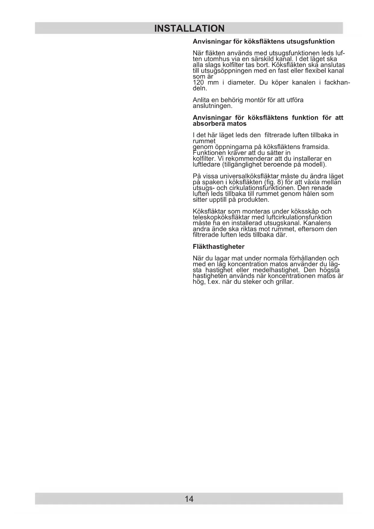 Läs dessa instruktioner noga innan du installerar köksäkten. Instruktionerna hjälper dig att undvika