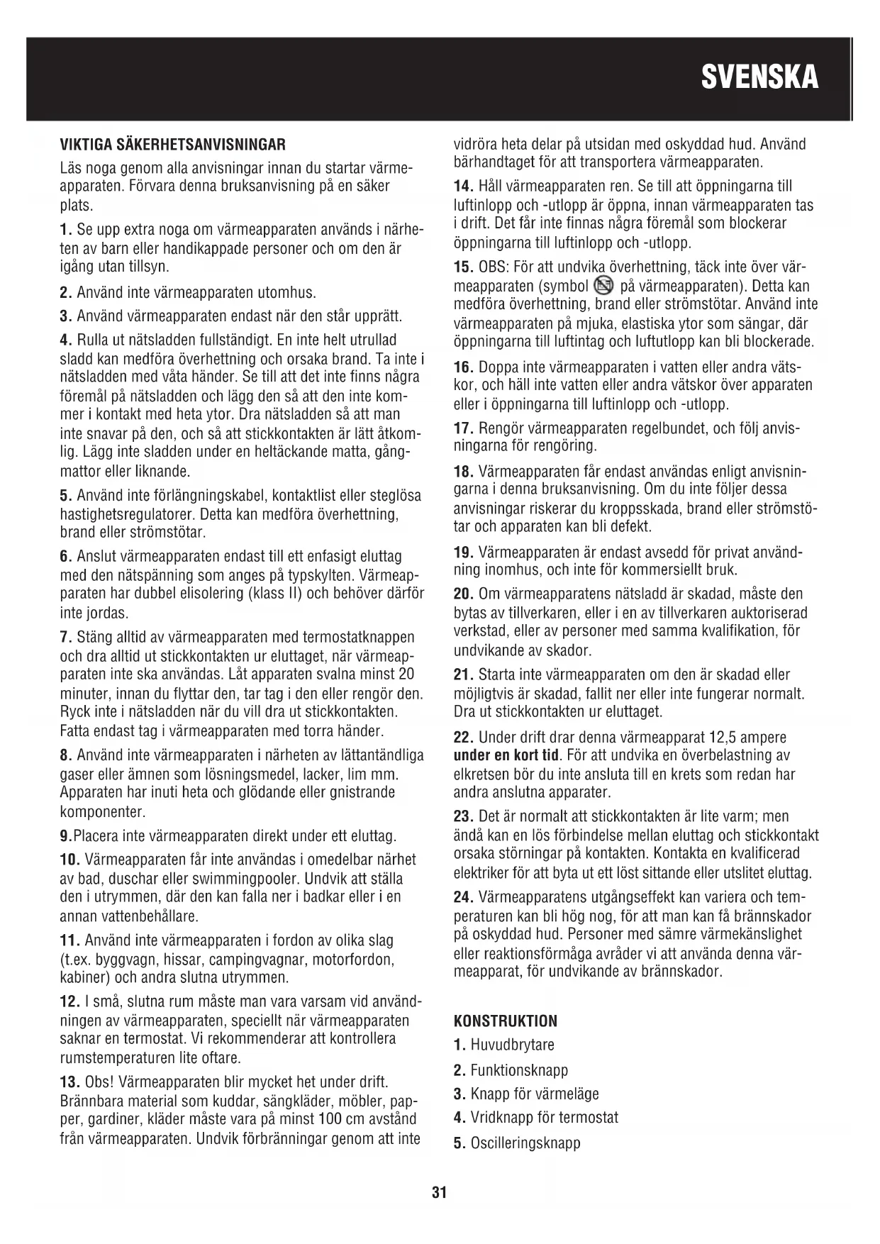 22. Under drift drar denna värmeapparat 12,5 ampere