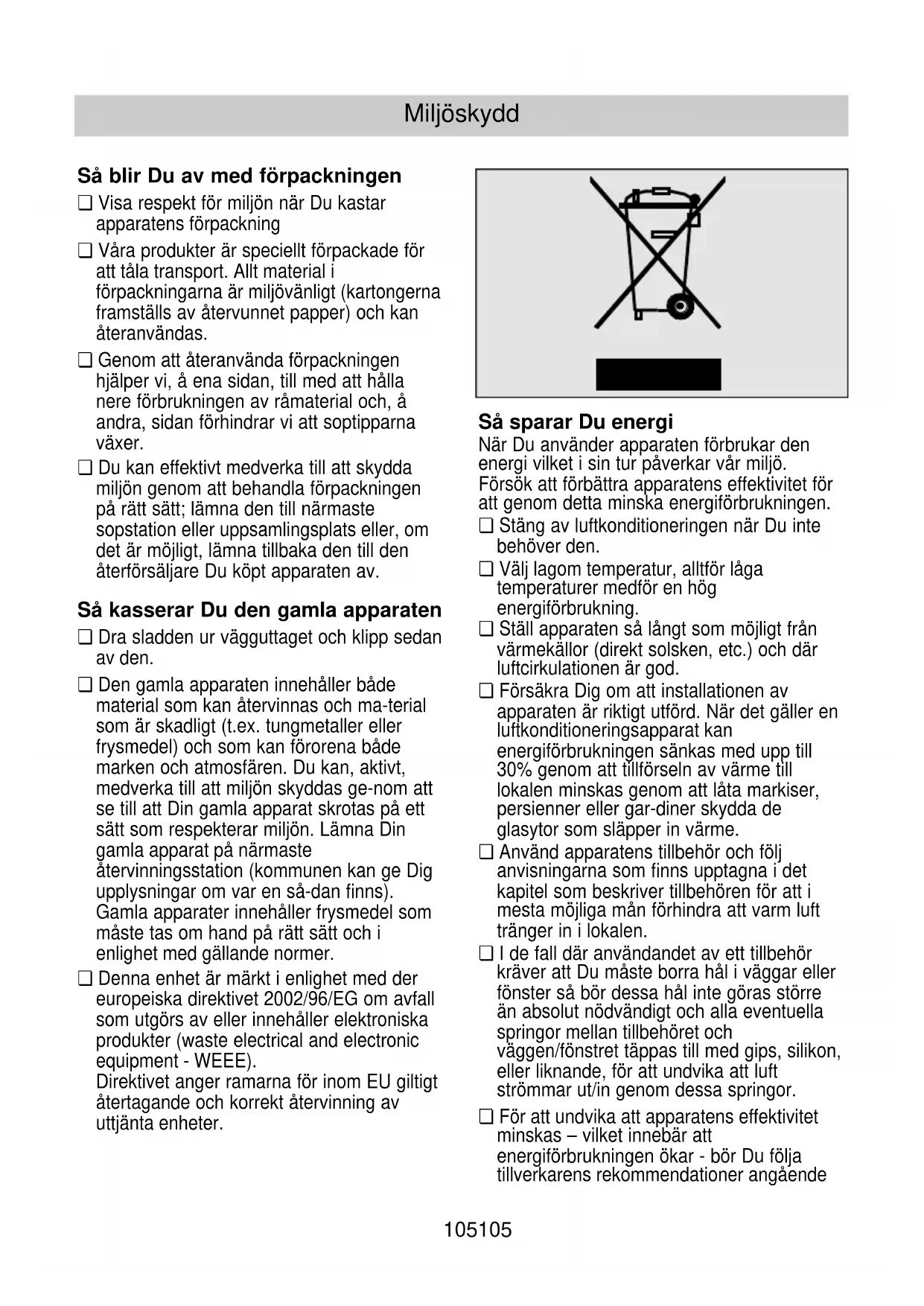 ❏ Visa respekt för miljön när Du kastar