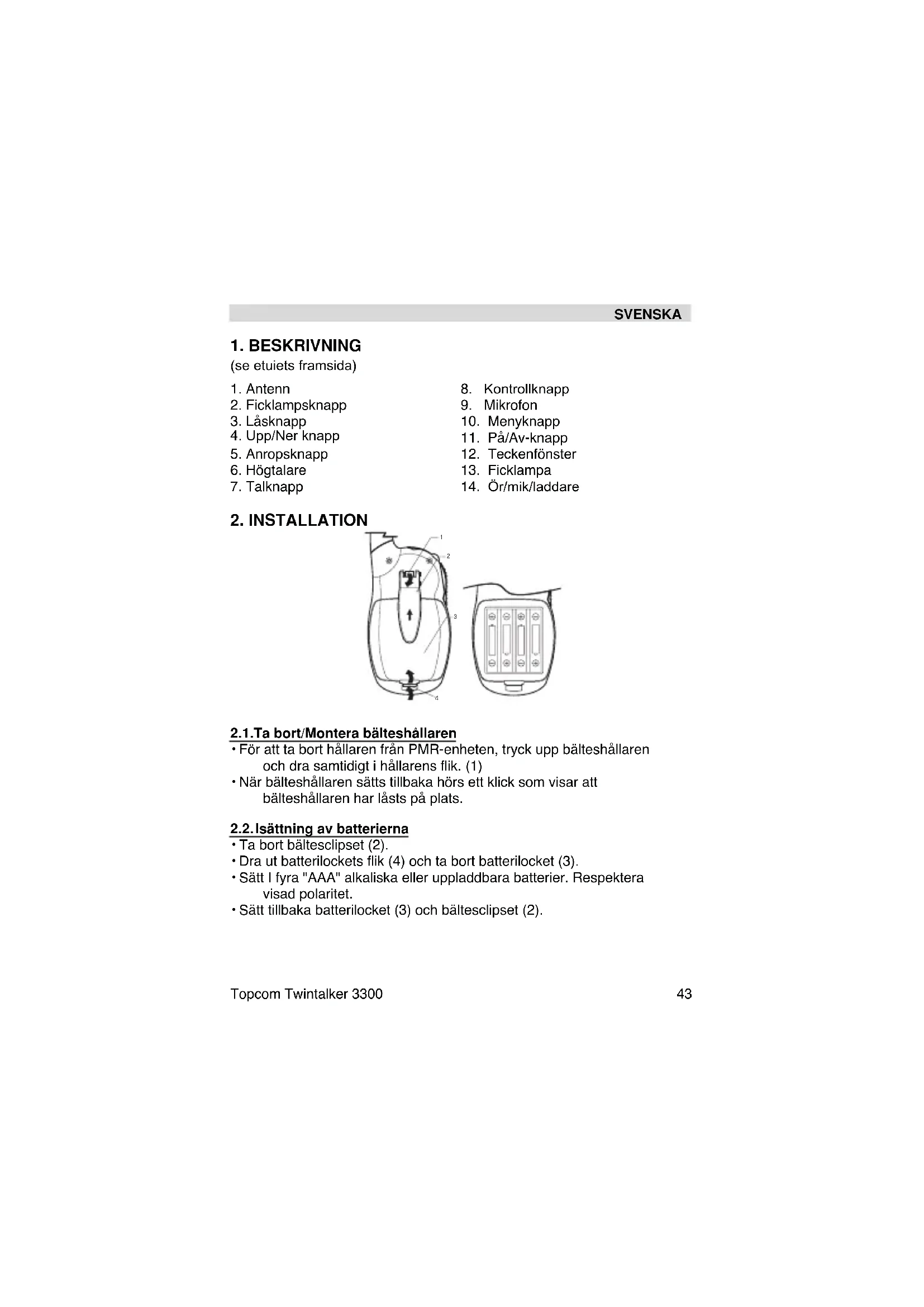 Hitta enhetens manual gratis Twintalker 3300 TOPCOM i PDF-format.