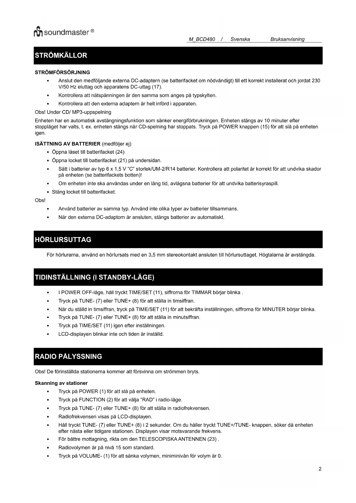 BRUKSANVISNING BCD480 Soundmaster