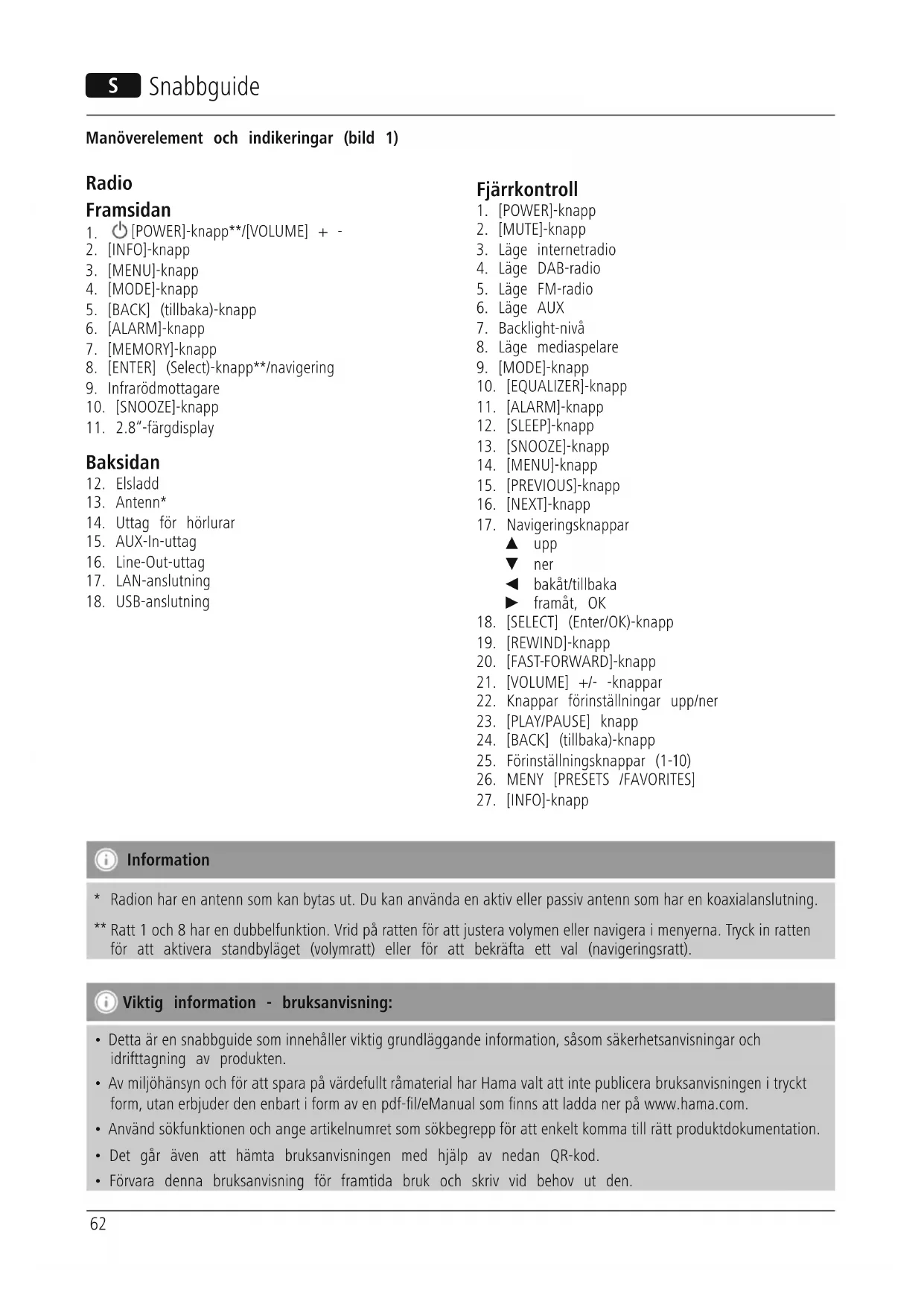 - Av miljöhänsyn och för att spara på värdefullt råmaterial har Hama valt att inte publicera bruksanvisningen i tryckt form, utan erbjuder den enbart i form av en pdf-l/eManual som nns att ladda ner på www.hama.com.