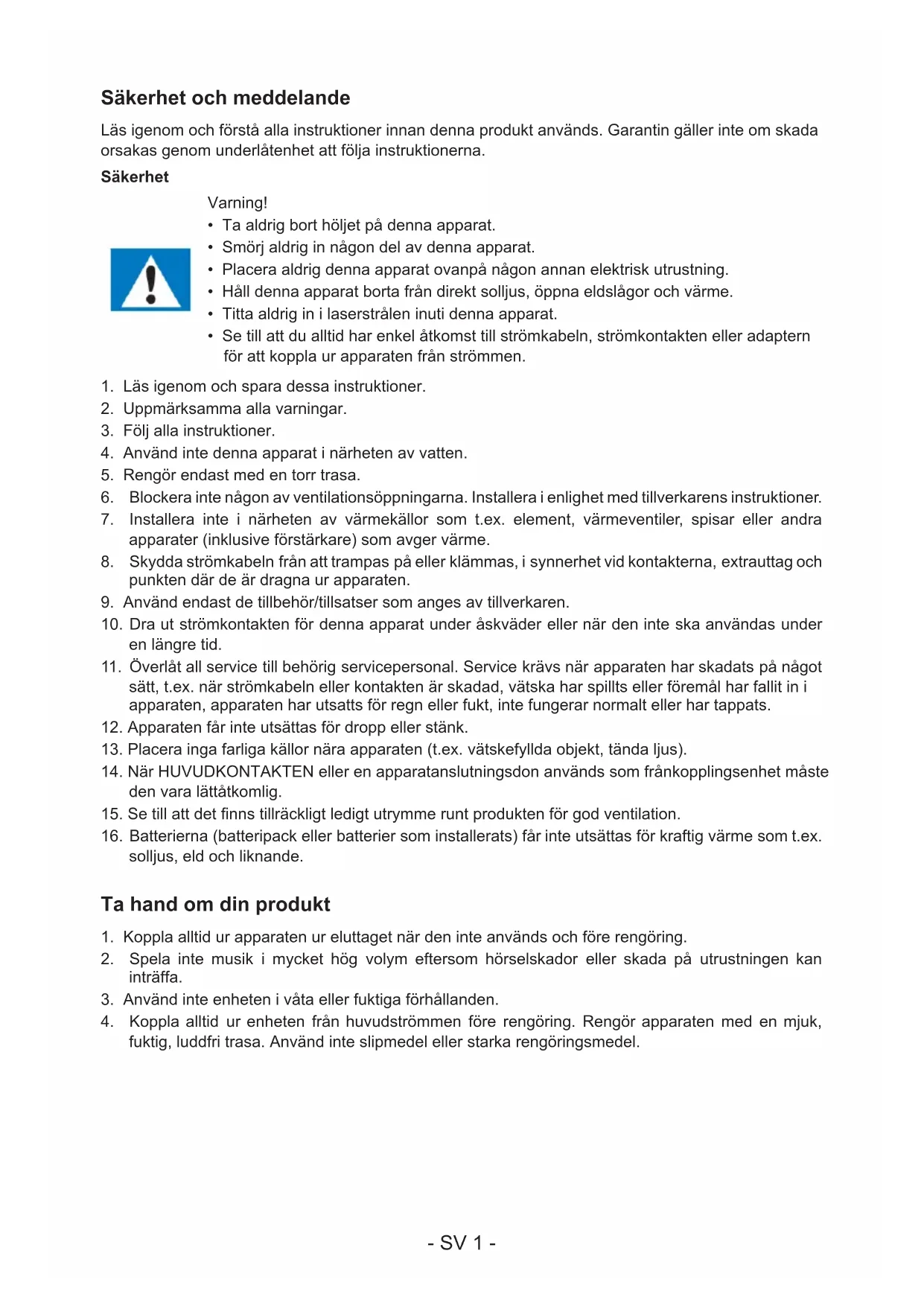 solljus, eld och liknande. Ta hand om din produkt