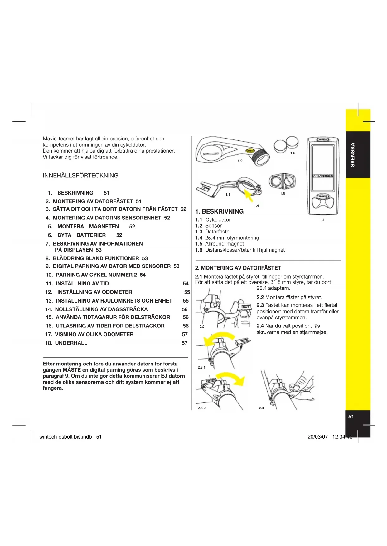 Wintech EBolt - Räknare MAVIC - Gratis bruksanvisning och manual