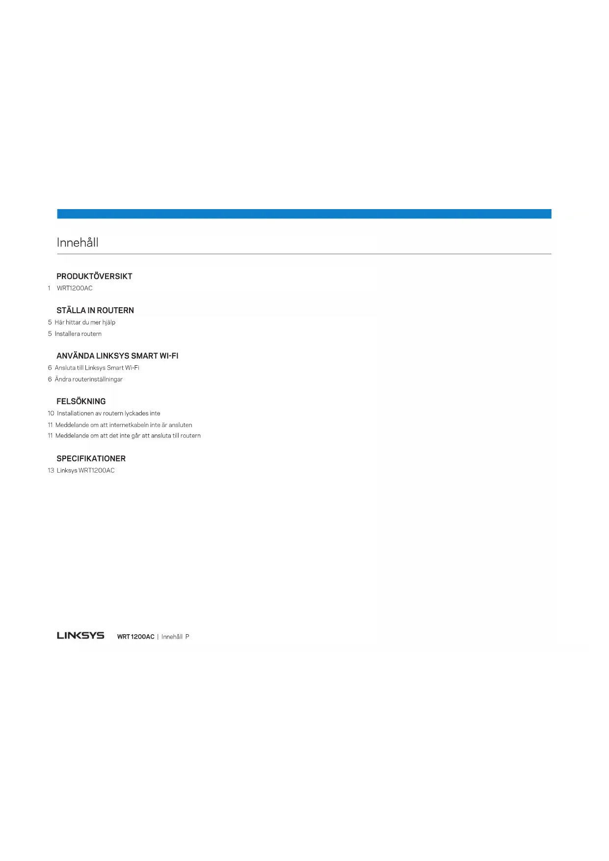 Ladda ner instruktionerna för din Router i PDF-format gratis! Hitta din manual WRT1200AC - LINKSYS och ta tillbaka ditt elektroniska enhet i hand. På denna sida publiceras alla dokument som behövs för att använda din enhet. WRT1200AC av märket LINKSYS.