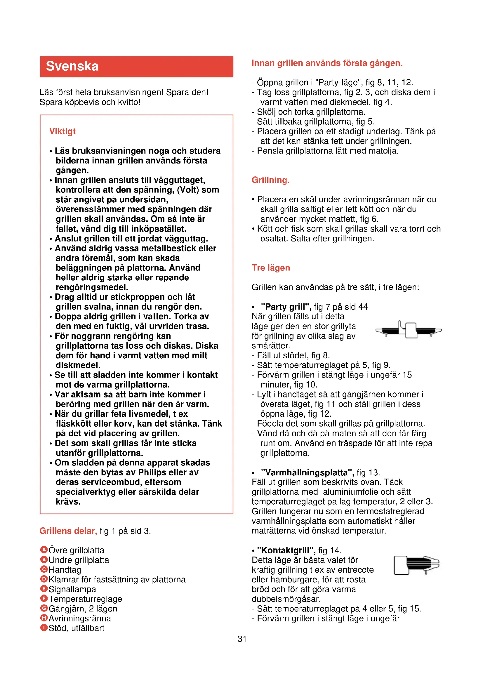 - Läs bruksanvisningen noga och studera bilderna innan grillen används första gången.
