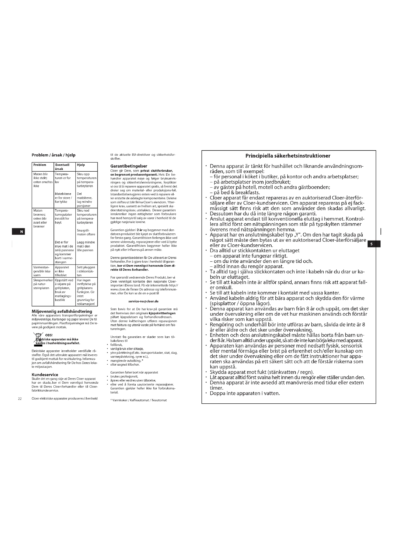 I eigenskap av privat slutkonsument fur Du en begrinsd tilverkningsgarantien Cloer. Vida omorsgulf fulltering och noogrant i klastagande av va bruksanvising likson sakerhets-instruktionema forpliktar vi oss, at kostnadsfritt reparater apportionen, sa langt det der fraqa om material- effer tilvernksgel. Vart atagande omfattar reparation respsätting van skadade componenter. Utbyyta delar blir da foretage Clores eugenid. Ytterigare krav-, oavsett v vilket slag -i synnerhet sk destandska rurtes-lut-na. Denna garanti reducrar ingrattigher, som konsumenter i fraga om forslajning av varor han englit gallande nationella lagar.