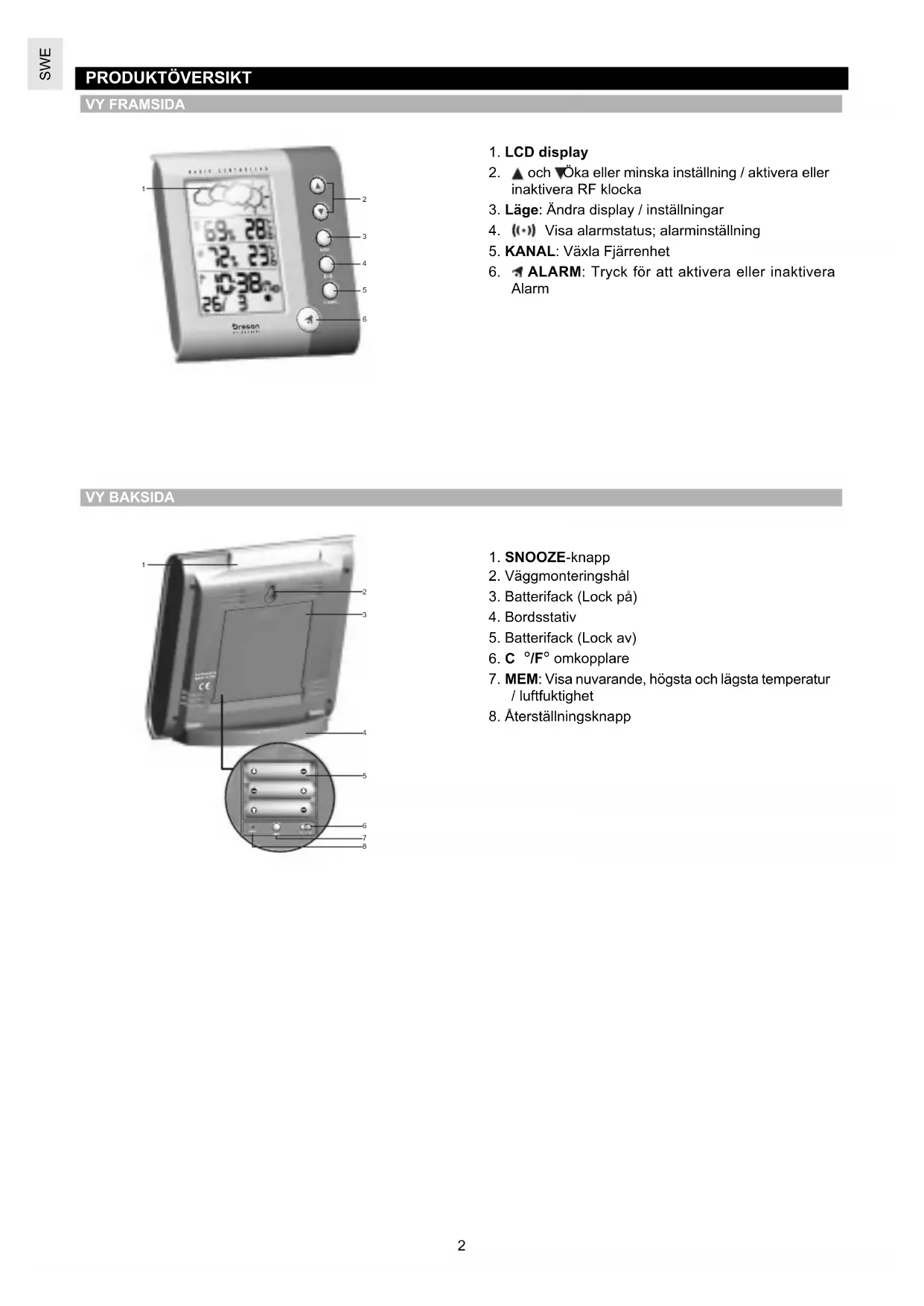 - Fjärrenhetsbatterier 2 x UM4 (AAA) 1.5V Ha denna manual till hands när du använder din nya produkt. Den innehåller en praktisk steg-för-steg instruktion, samt teknisk specifikation och varningsmeddelanden som du bör känna till. Trådlös Väderstation Modell: BAR628HG / BAR628HGU AnvändarmanualSWE