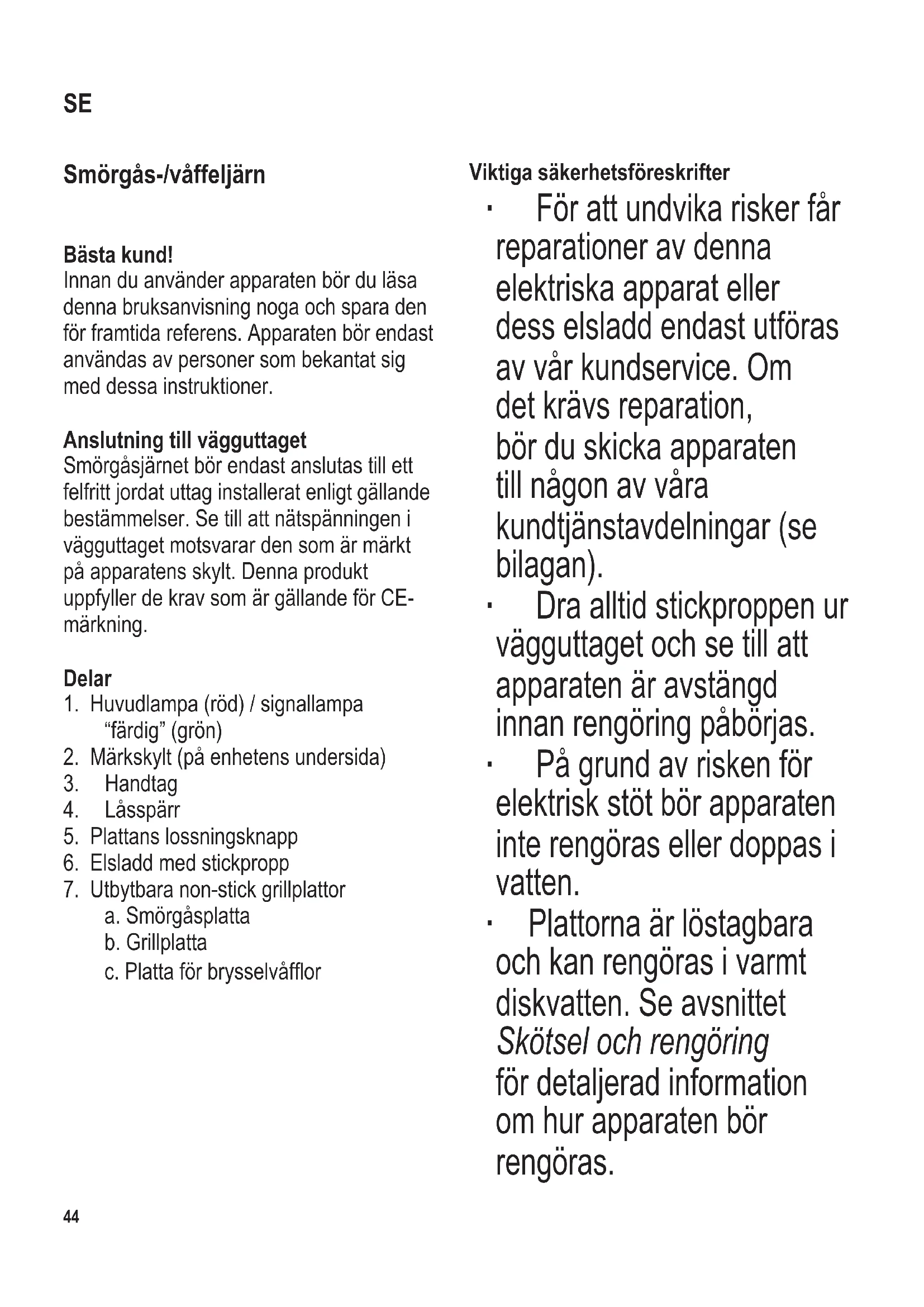 SE Bruksanvisning Smörgås-/väffeljärn 44