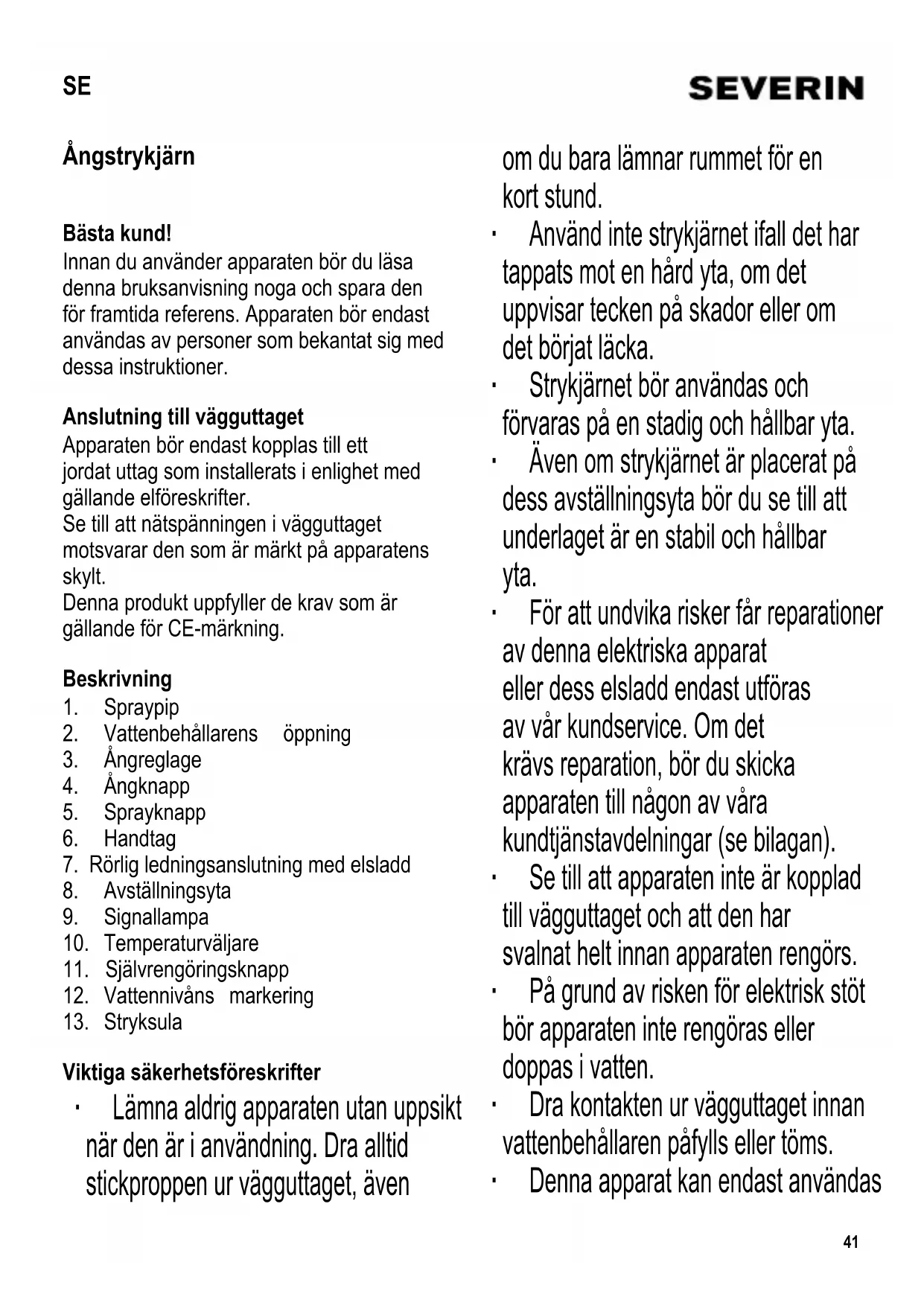 BA 3243 - Strykjärn SEVERIN - Gratis bruksanvisning och manual