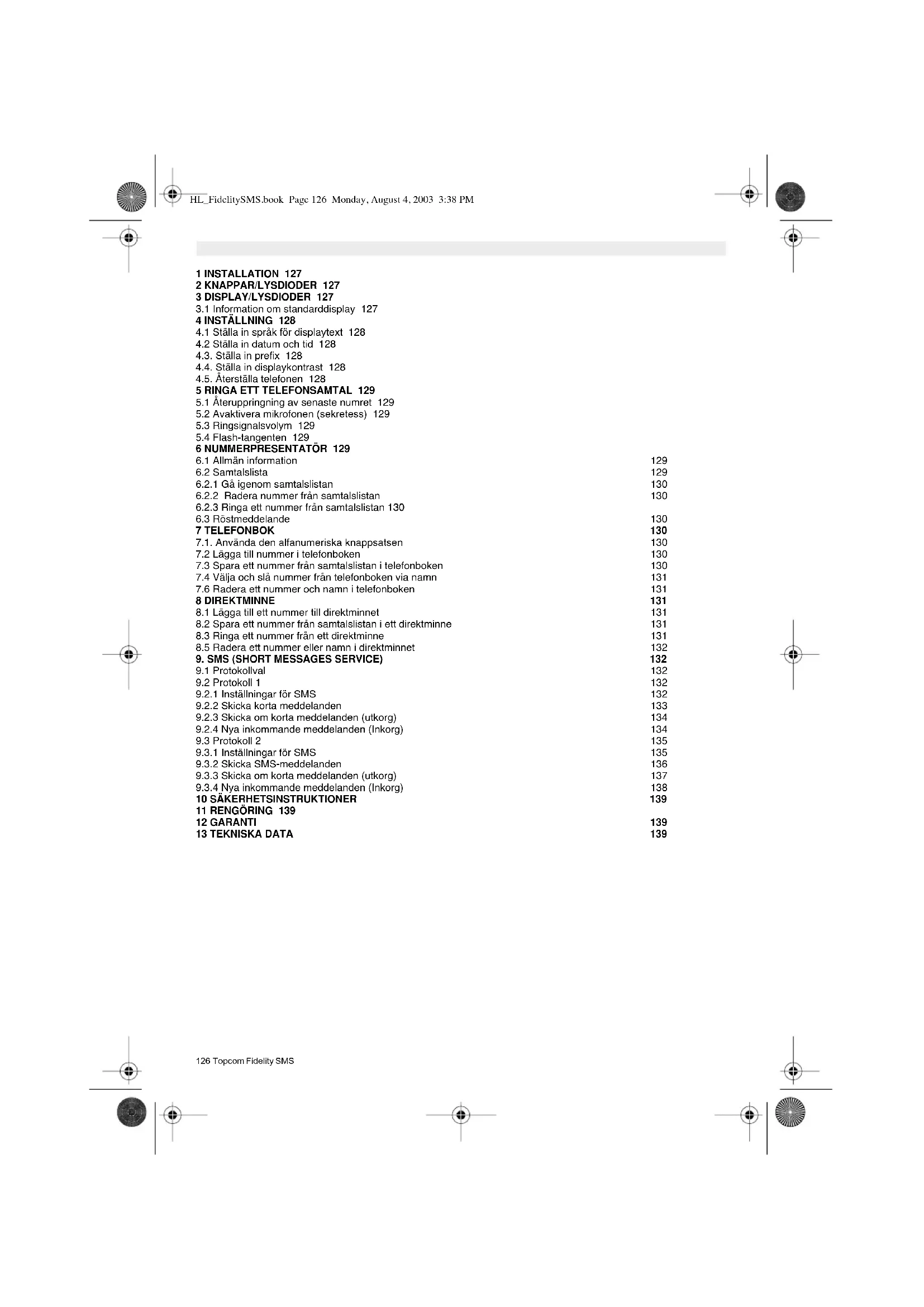 - Gå ut från menyn genom att trycka på Escape-knappen två gånger. HL_FidelitySMS.book Page 128 Monday, August 4, 2003 3:38 PMTopcom Fidelity SMS 129 SVENSKA