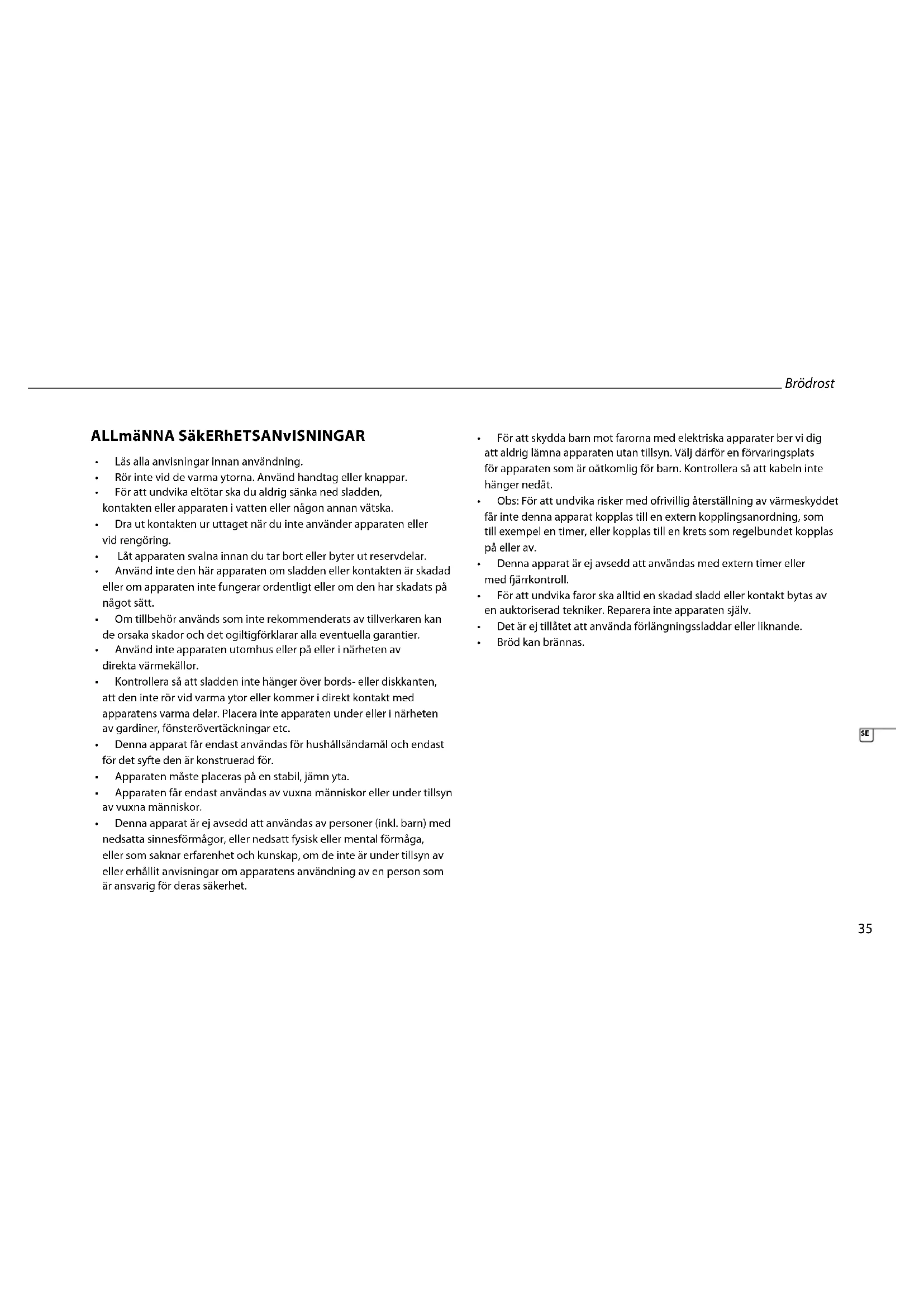 - Garantinupphörattgällavidobehörigaändringaravapparaten. Brödrost38