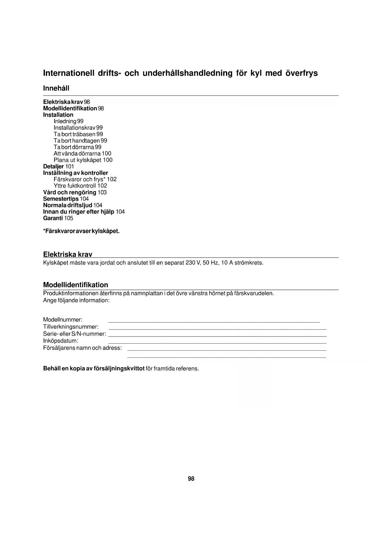 International drifts- och underhällshandelneding for kyl med overfrys