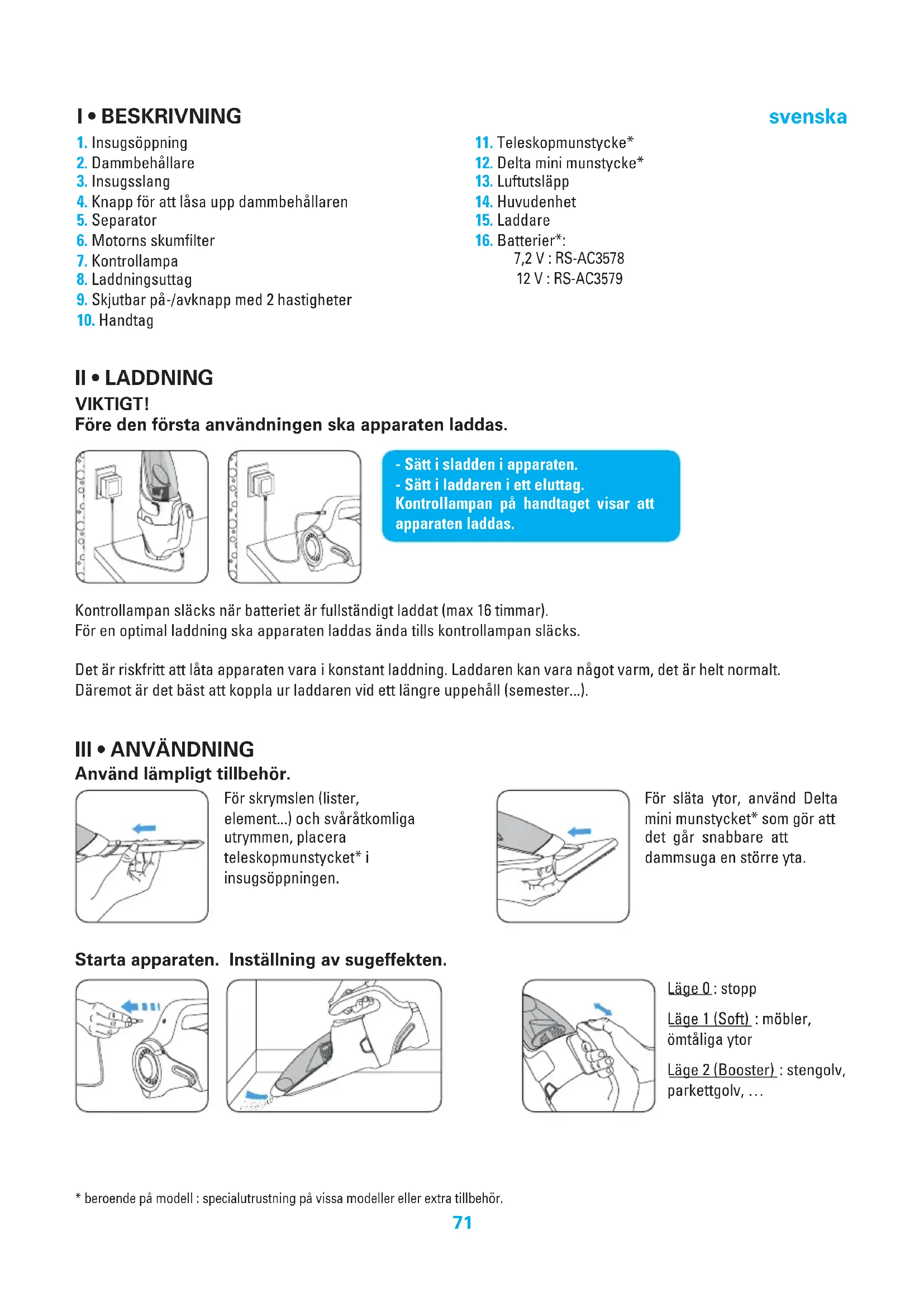 Dammsugaren are en elektrisk apparat: den ska anvandas under normala forhallanden.