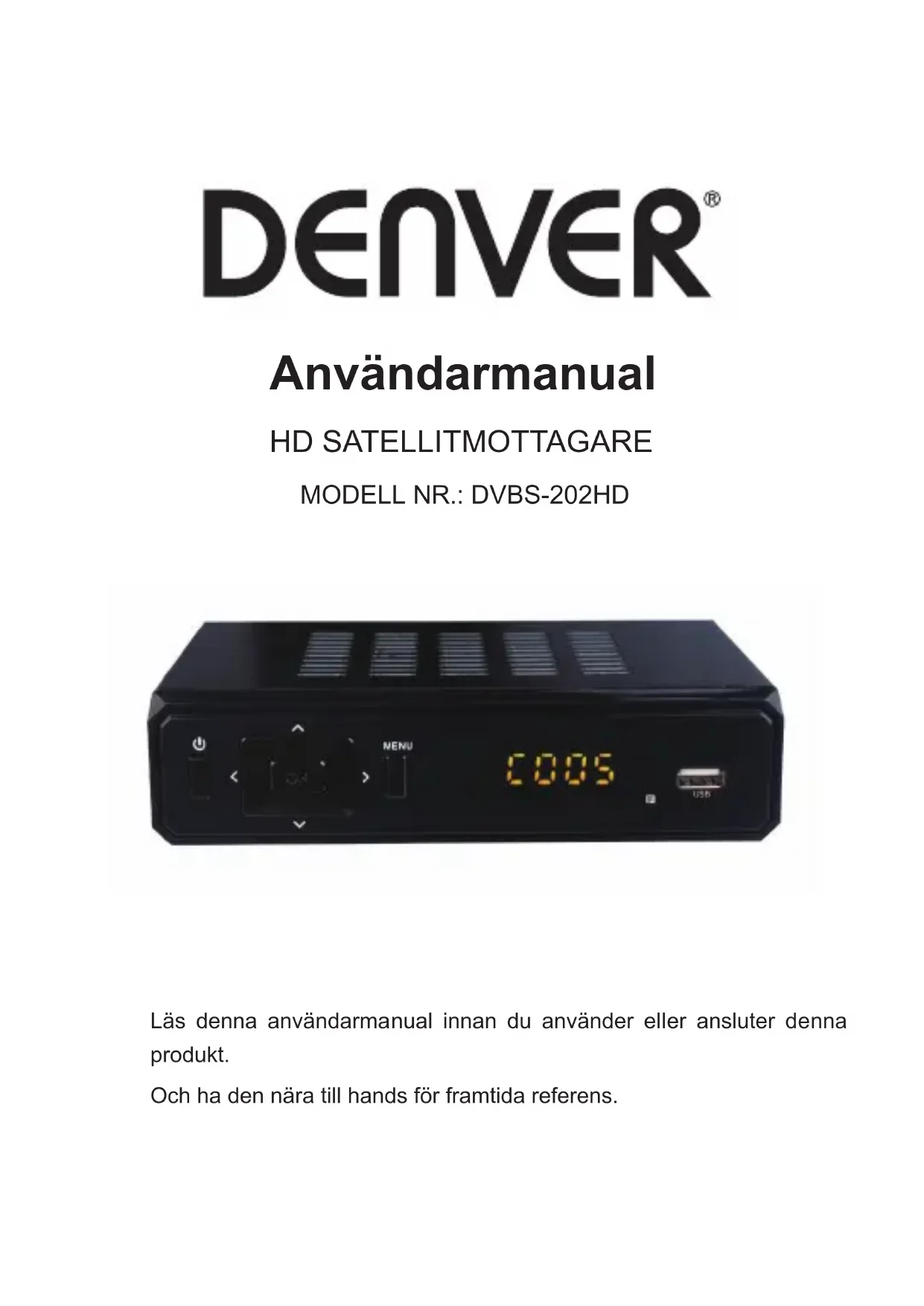 DVBS202HD - Satellitmottagare DENVER - Gratis bruksanvisning och manual