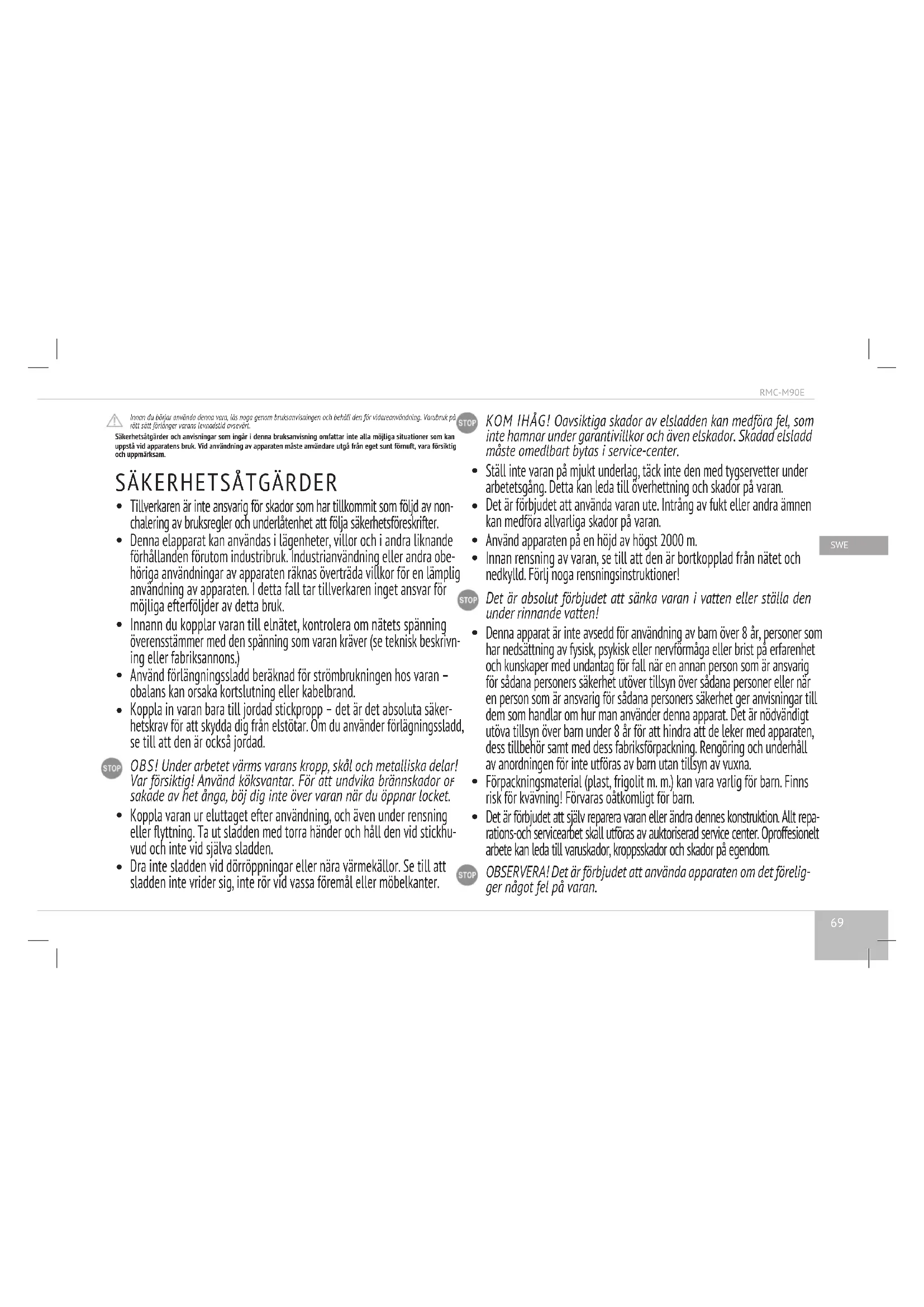 BRUKSANVISNING RMCM90E Redmond
