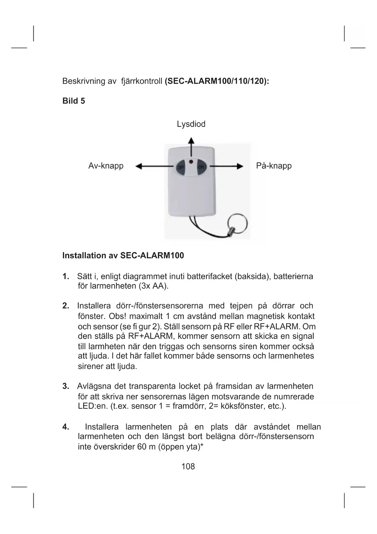 larmenheten och den längst bort belägna dörr-/fönstersensorn inte överskrider 60 m (öppen yta)*109