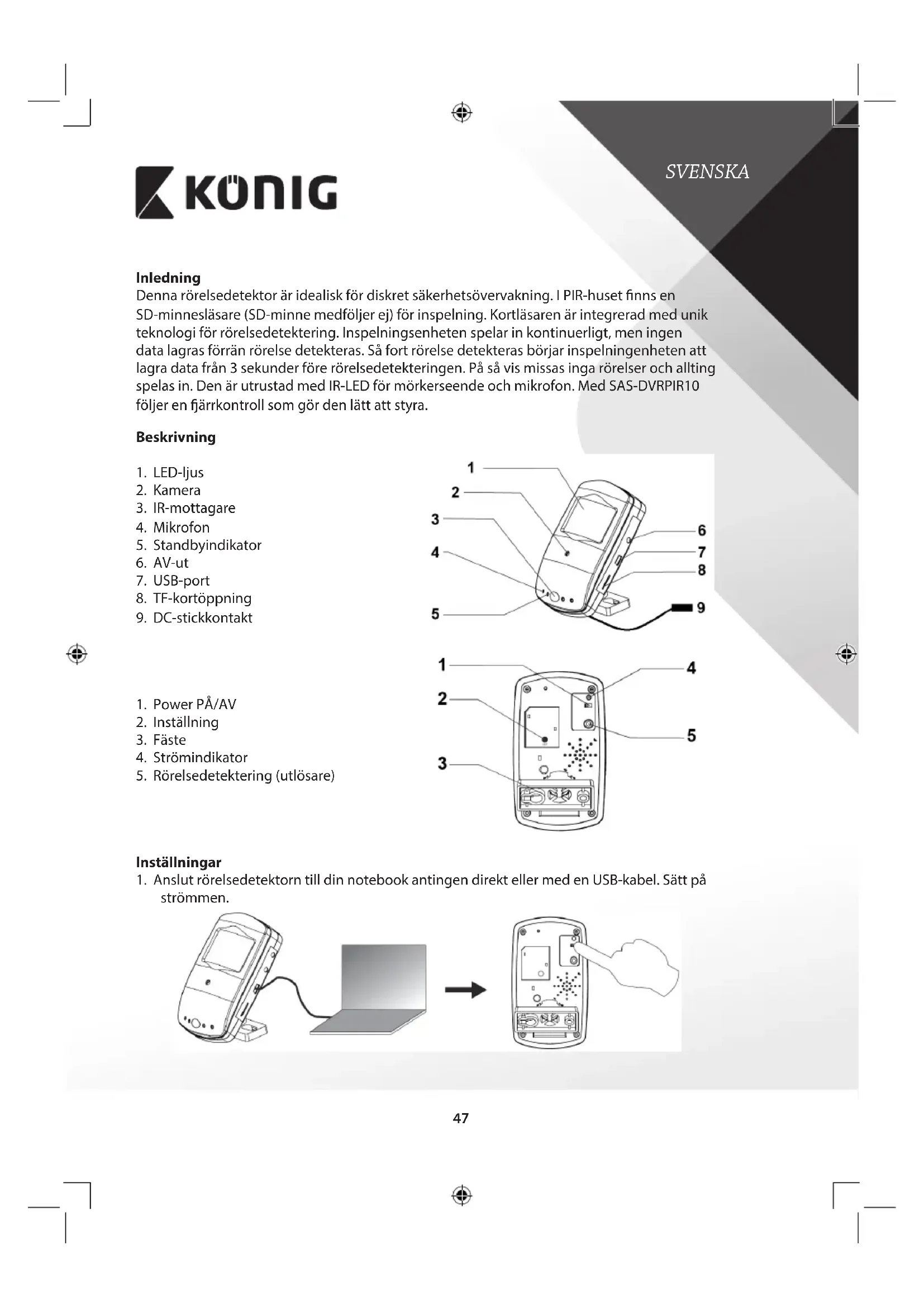 Hitta enhetens manual gratis SASDVRPIR10 KONIG i PDF-format.