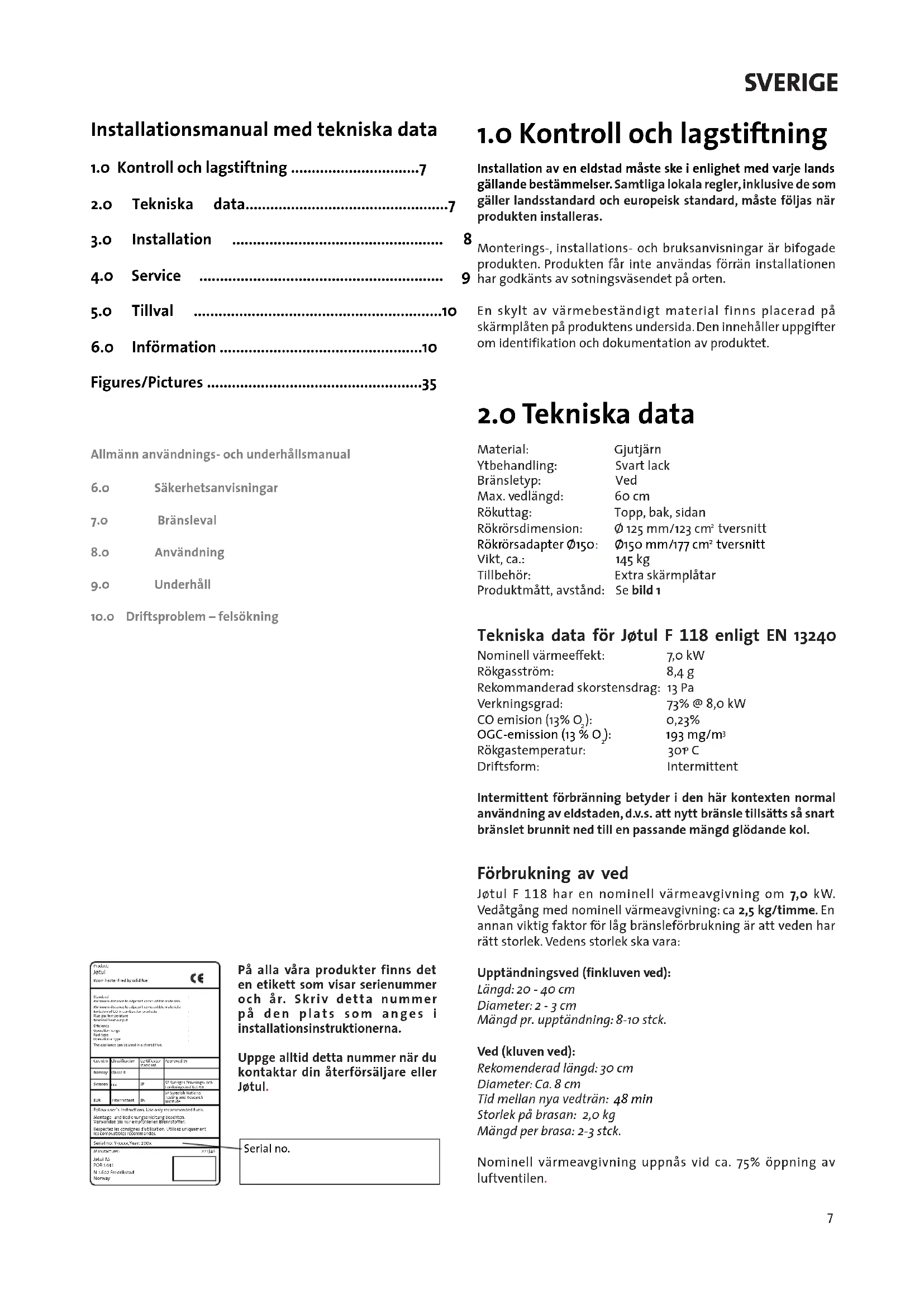 Uppge alltid detta nummer när du kontaktar din Återförsäljare eller Jøtul.