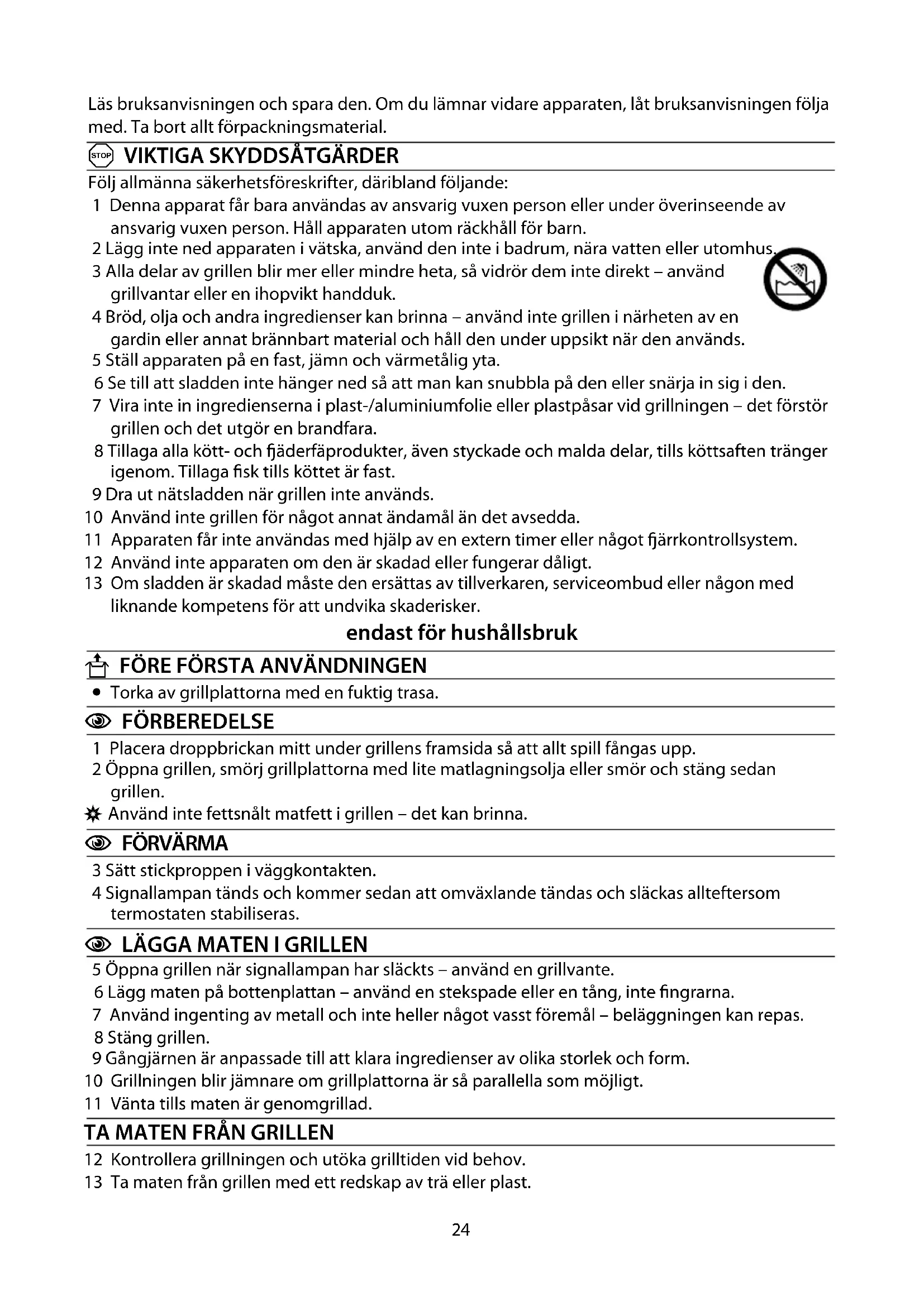 9 Dra ut nätsladden när grillen inte används.