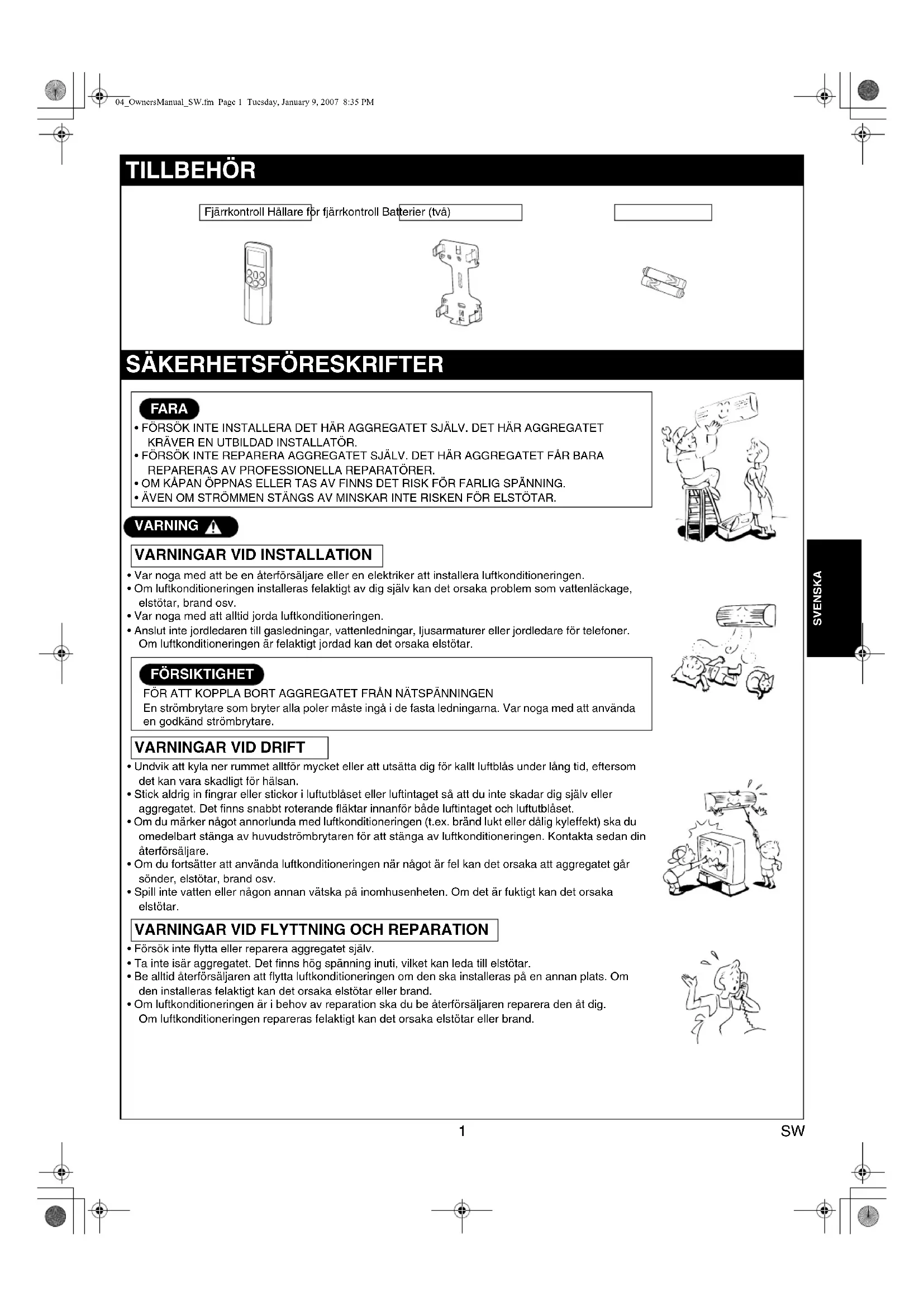 Fjärrkontroll Hållare för fjärrkontroll Batterier (två) 04_OwnersManual_SW.fm Page 1 Tuesday, January 9, 2007 8:35 PM2