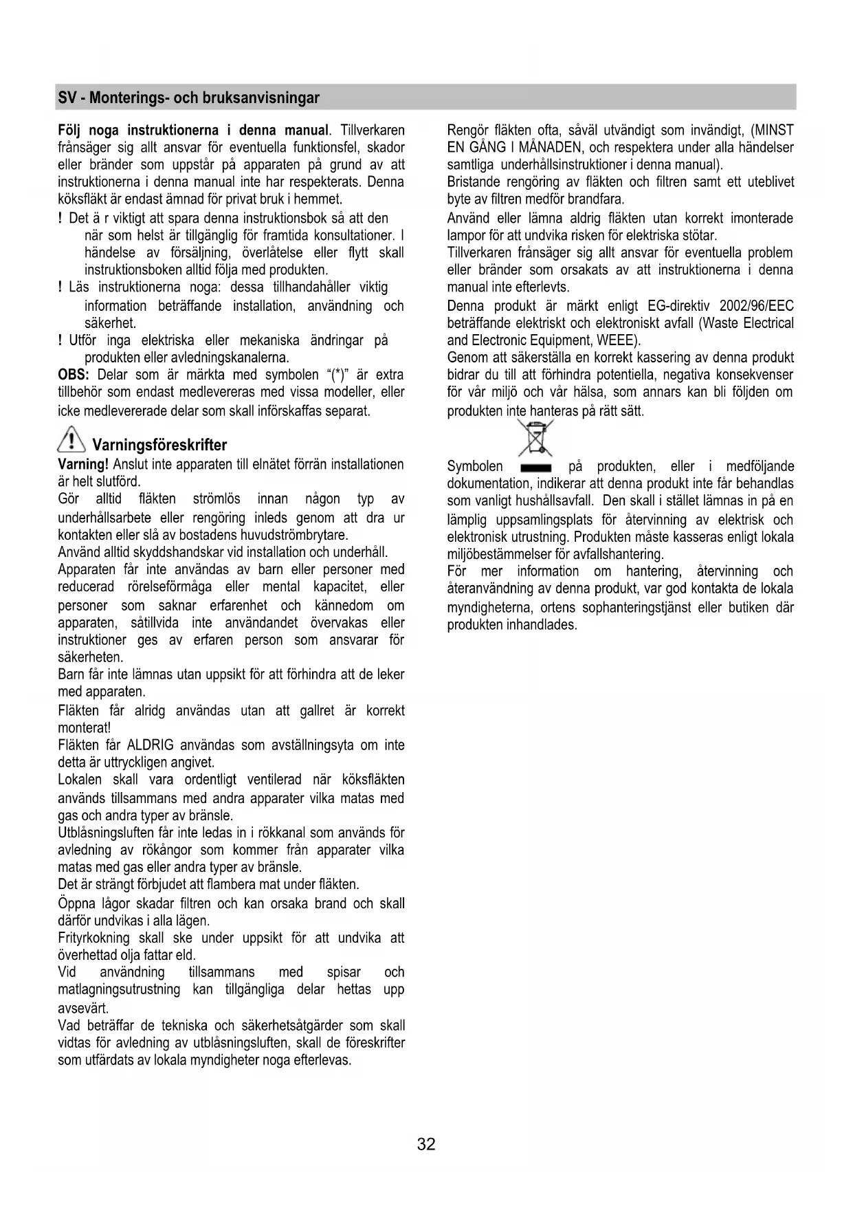 Tivoli - Köksfläkt TURBOAIR - Gratis bruksanvisning och manual