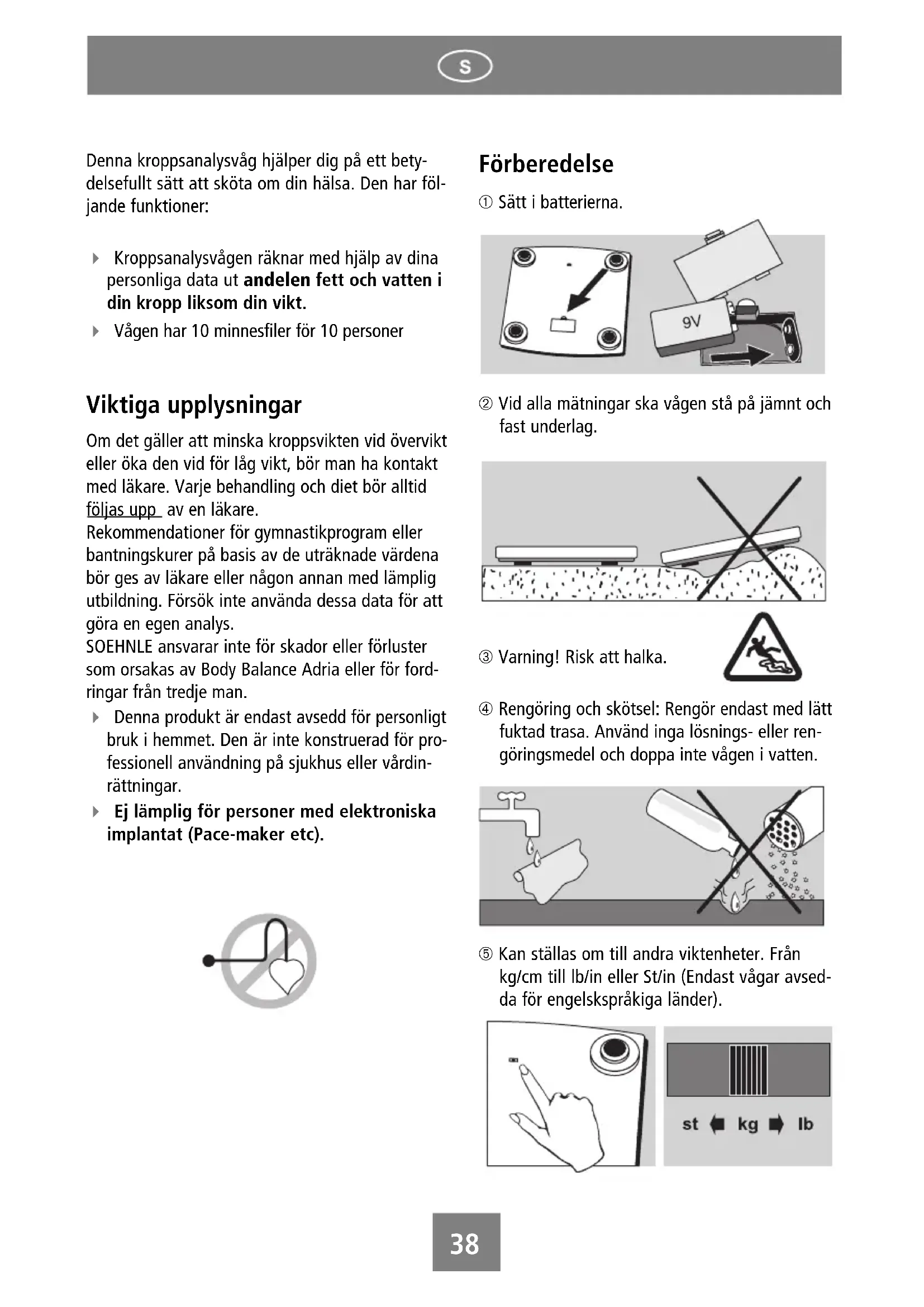 SOEHNLE ansvarar inte for skador eller forluster som orsakas av Body Balance Adria aller for ford-ringar fran tredje man.