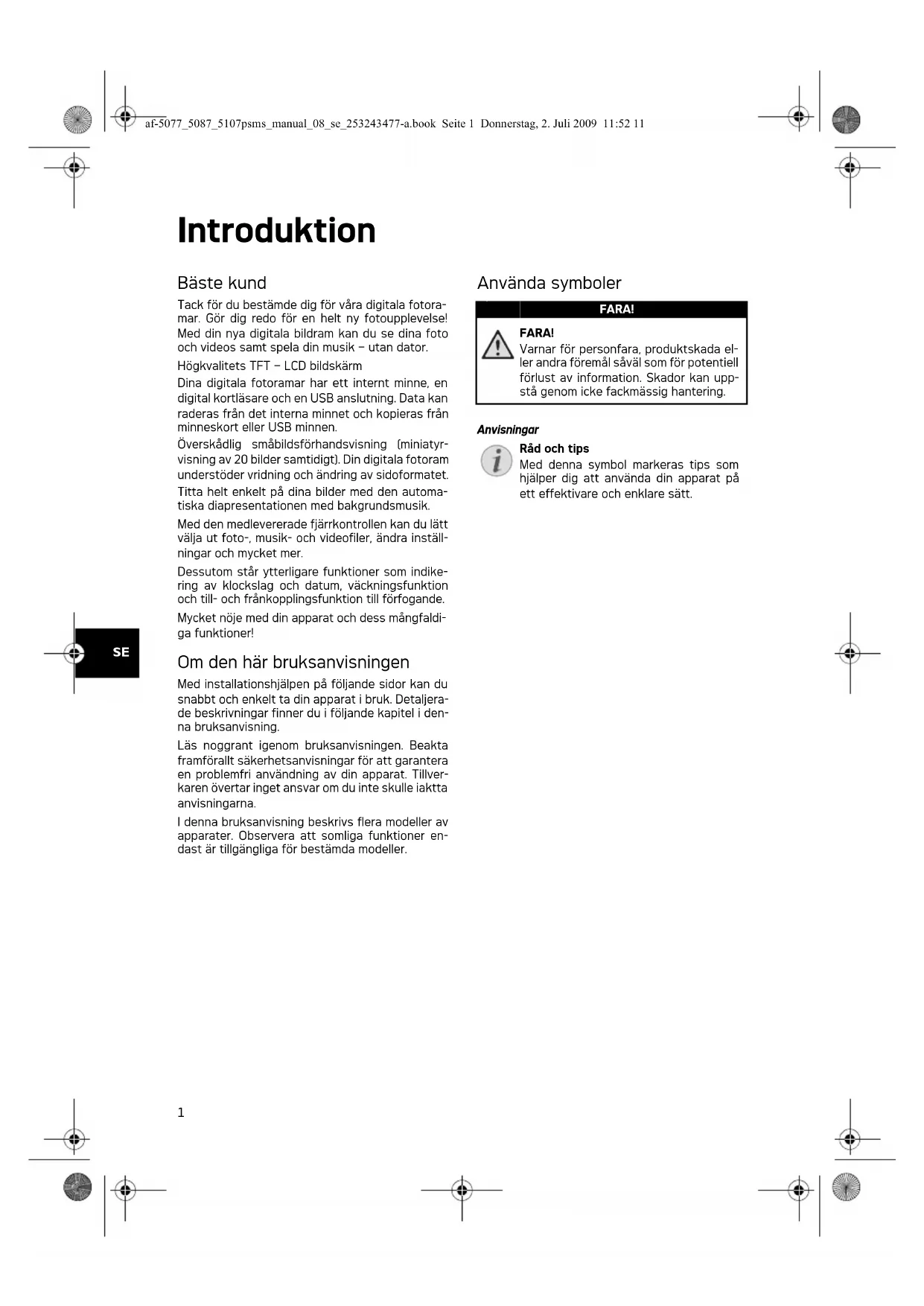Tack för du bestämde dig för våra digitala fotoramar. Gör dig redo för en helt ny fotouplevelse! Med din nya digitala bildram kan du se dina foto och videos samt spela din musik – utan dator.
