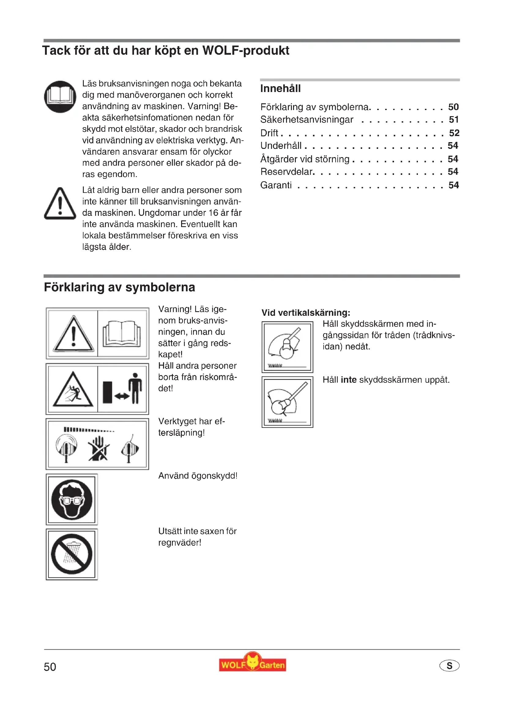 - S Tack för att du har köpt en WOLF-produkt Innehåll Förklaring av symbolerna p. 50