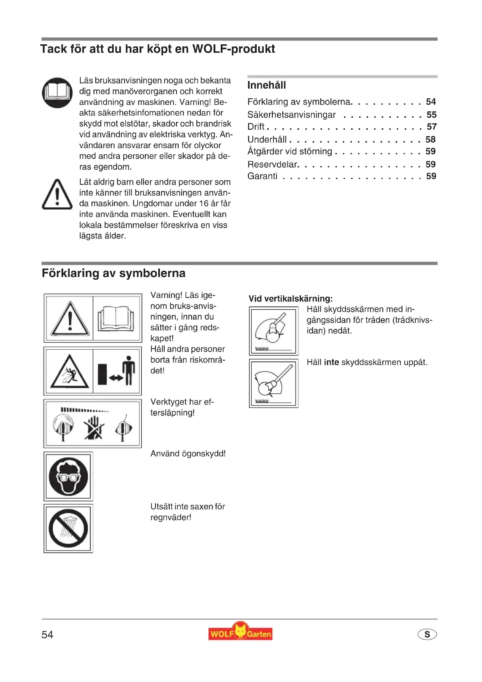 - S Tack för att du har köpt en WOLF-produkt Innehåll Förklaring av symbolerna p. 54