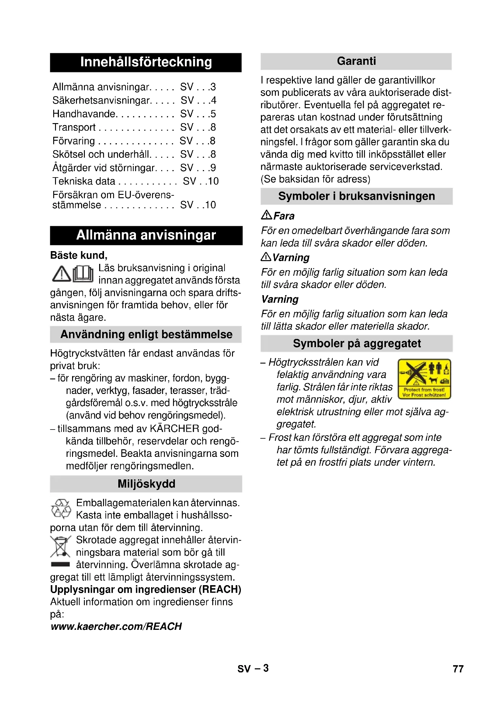 - SV Säkerhetsanvisningar p. 3