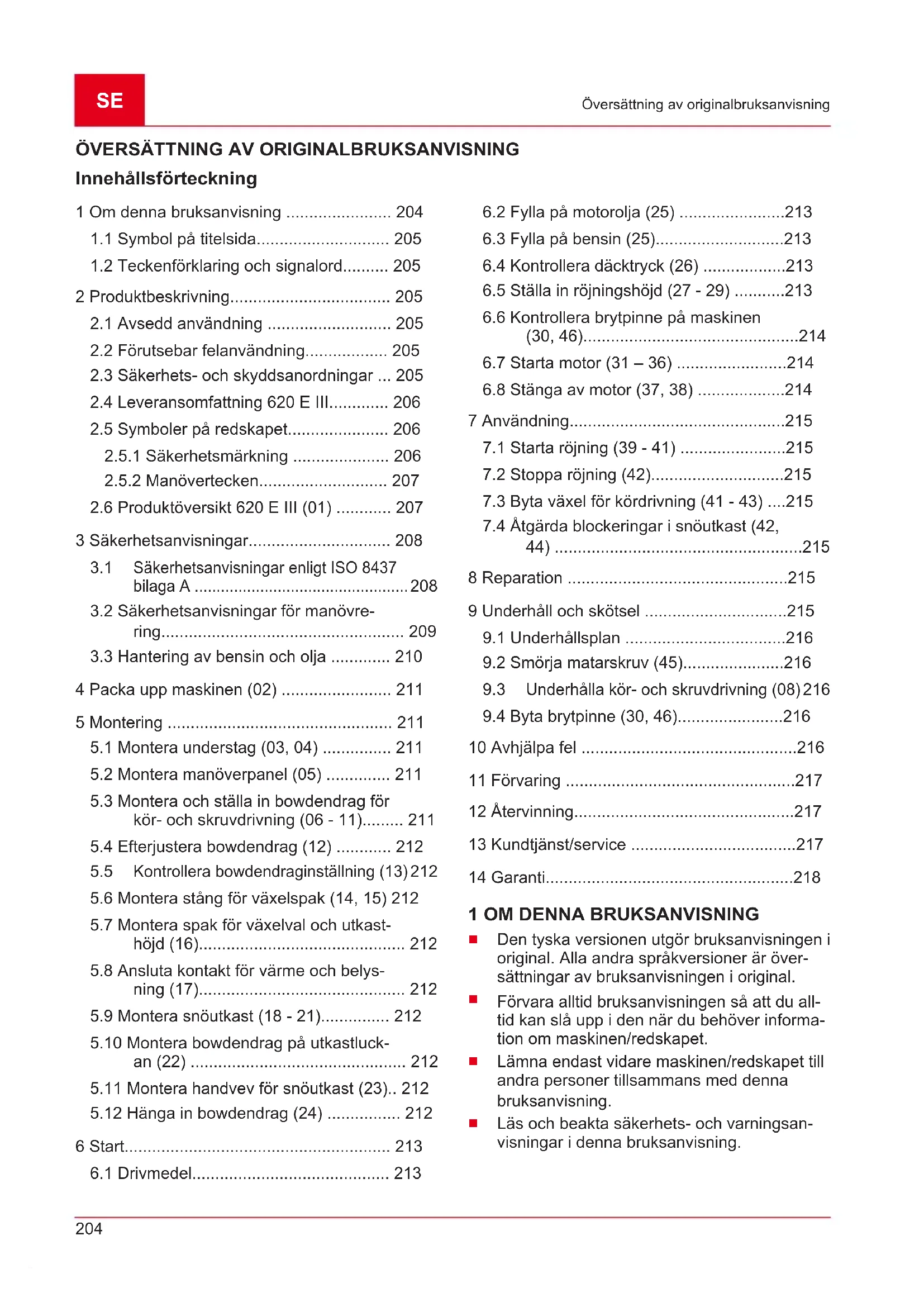 Innehållsförteckning 1 Om denna bruksanvisning ....................... 204