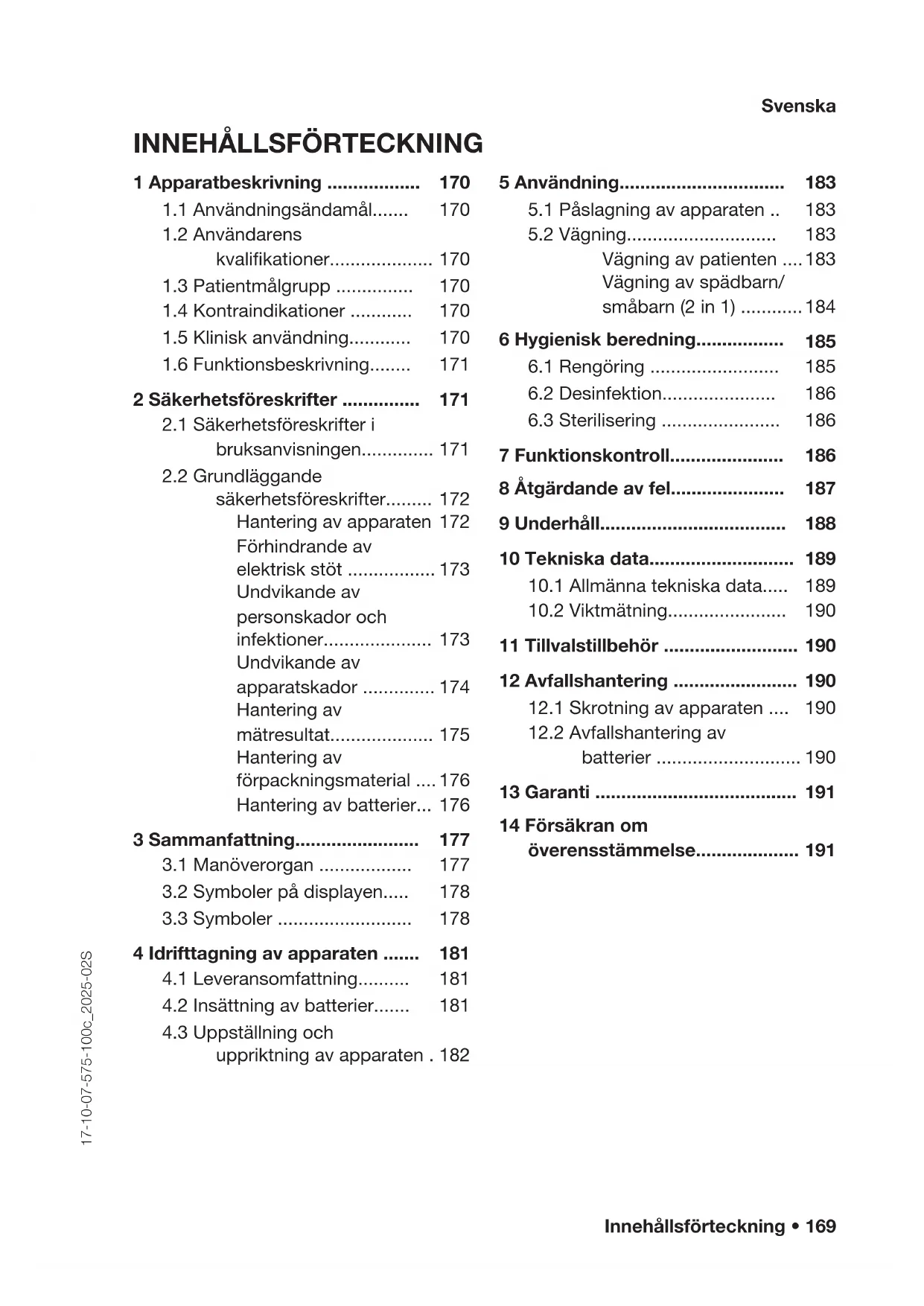 2.1 Sakerhetsforeskrifter i bruksanvisningen 171