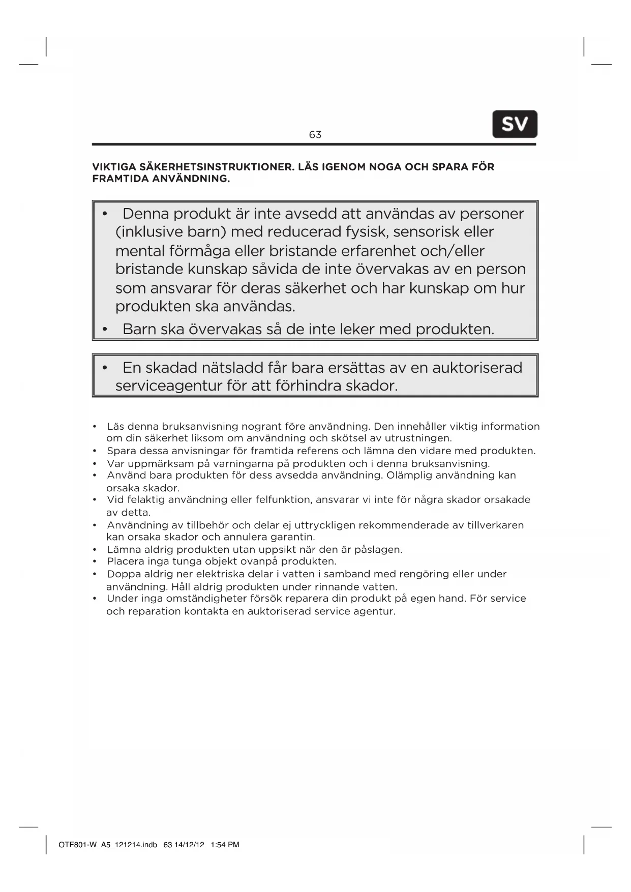 - Produktenfårendastanslutastillelnätetnärdenärheltfärdigmonterad. OTF801-W_A5_121214.indb 64 14/12/12 1:54 PM65 Size - A5 GRATTIS Tackförattduharvaltattköaenok.produkt.Läsnogaigenombruksanvisningen ochförvaradenförframtidabehov.