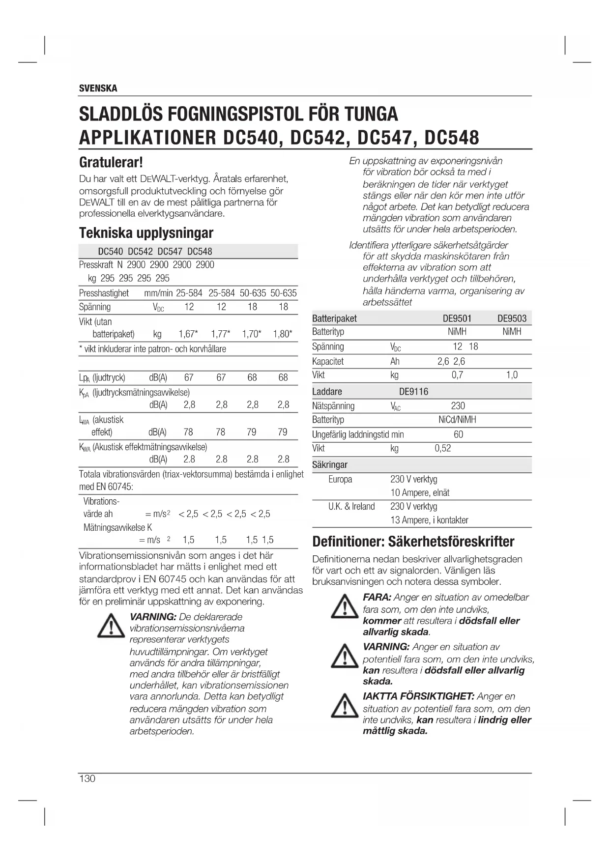 BRUKSANVISNING DC548 DEWALT