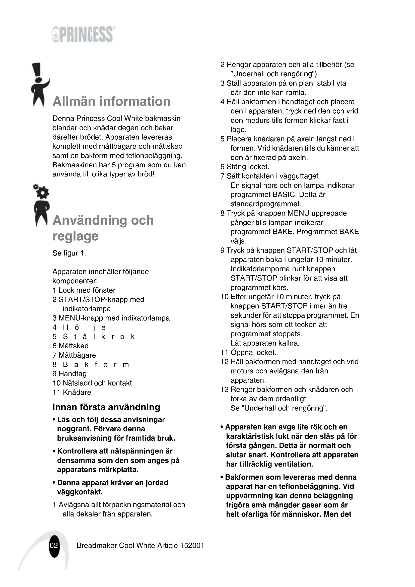 BRUKSANVISNING 152001 PRINCESS