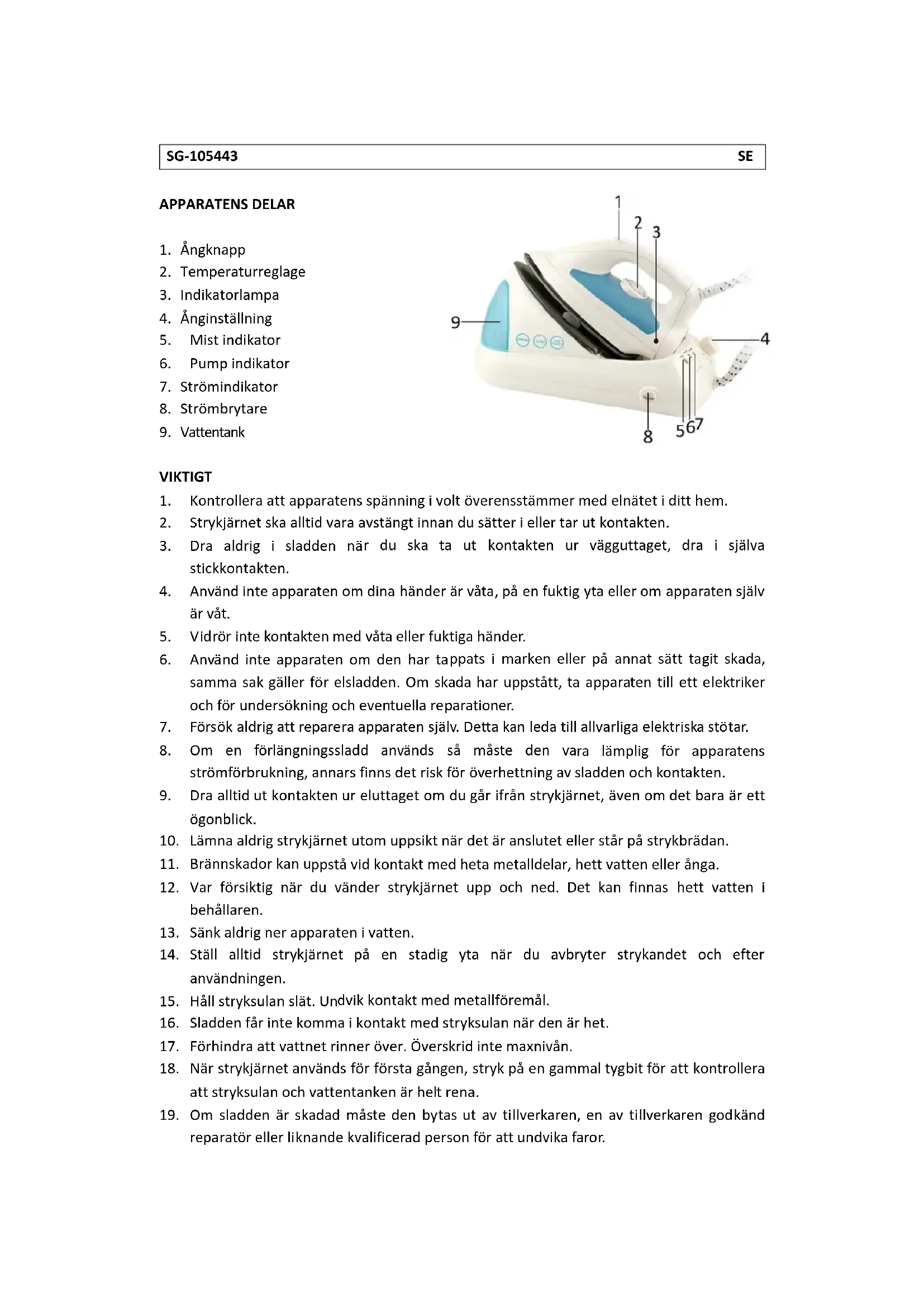 SG105443 - Strykjärn WAVES - Gratis bruksanvisning och manual
