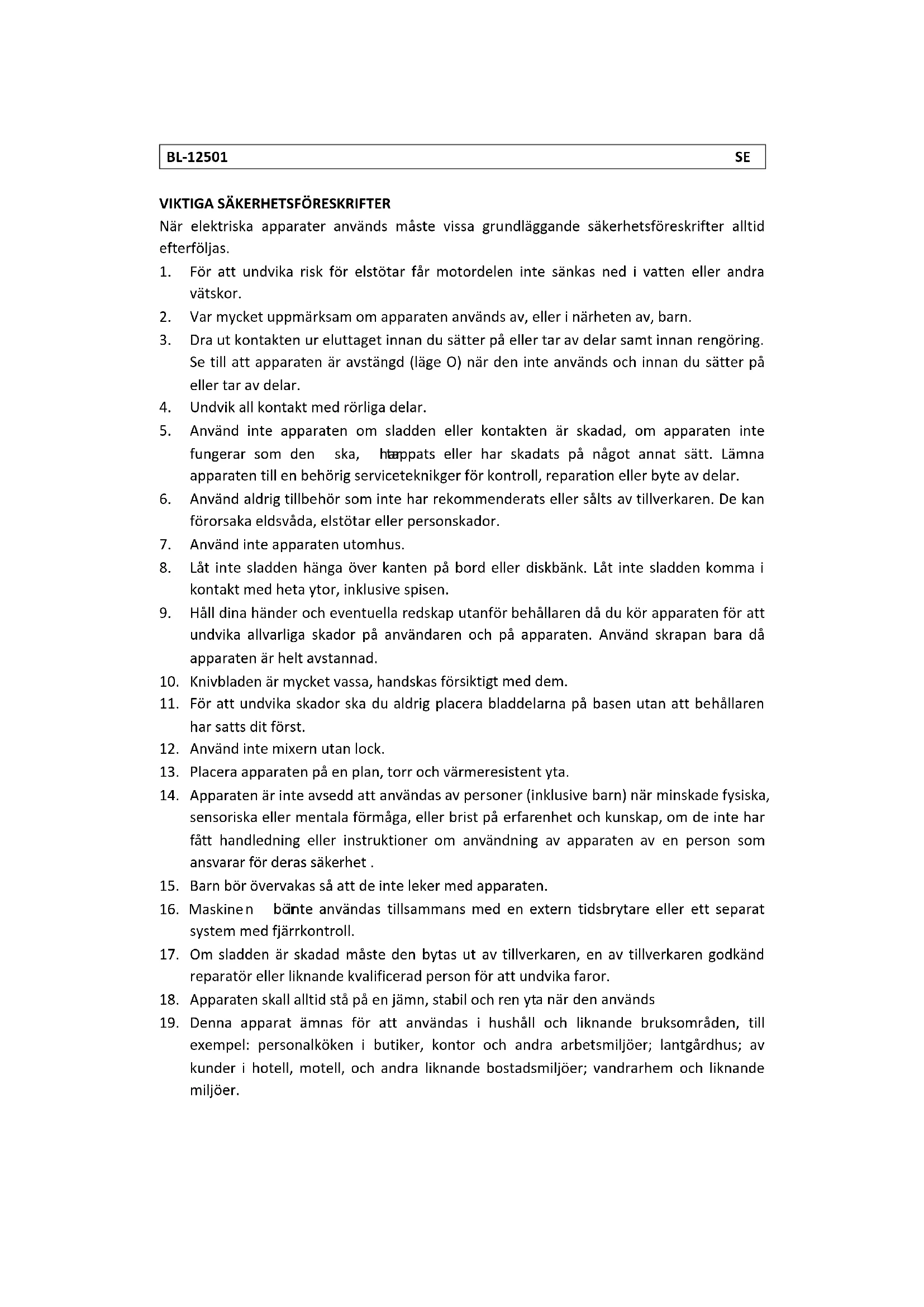 - Kör aldrig mixern tom eller med endast fasta ämnen.
