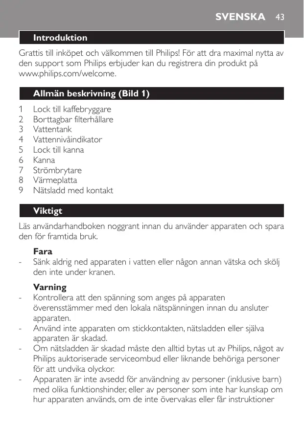 Téléchargez la notice de votre Kaffebryggare au format PDF gratuitement ! Retrouvez votre notice HD7458/02 - PHILIPS et reprennez votre appareil électronique en main. Sur cette page sont publiés tous les documents nécessaires à l'utilisation de votre appareil HD7458/02 de la marque PHILIPS.