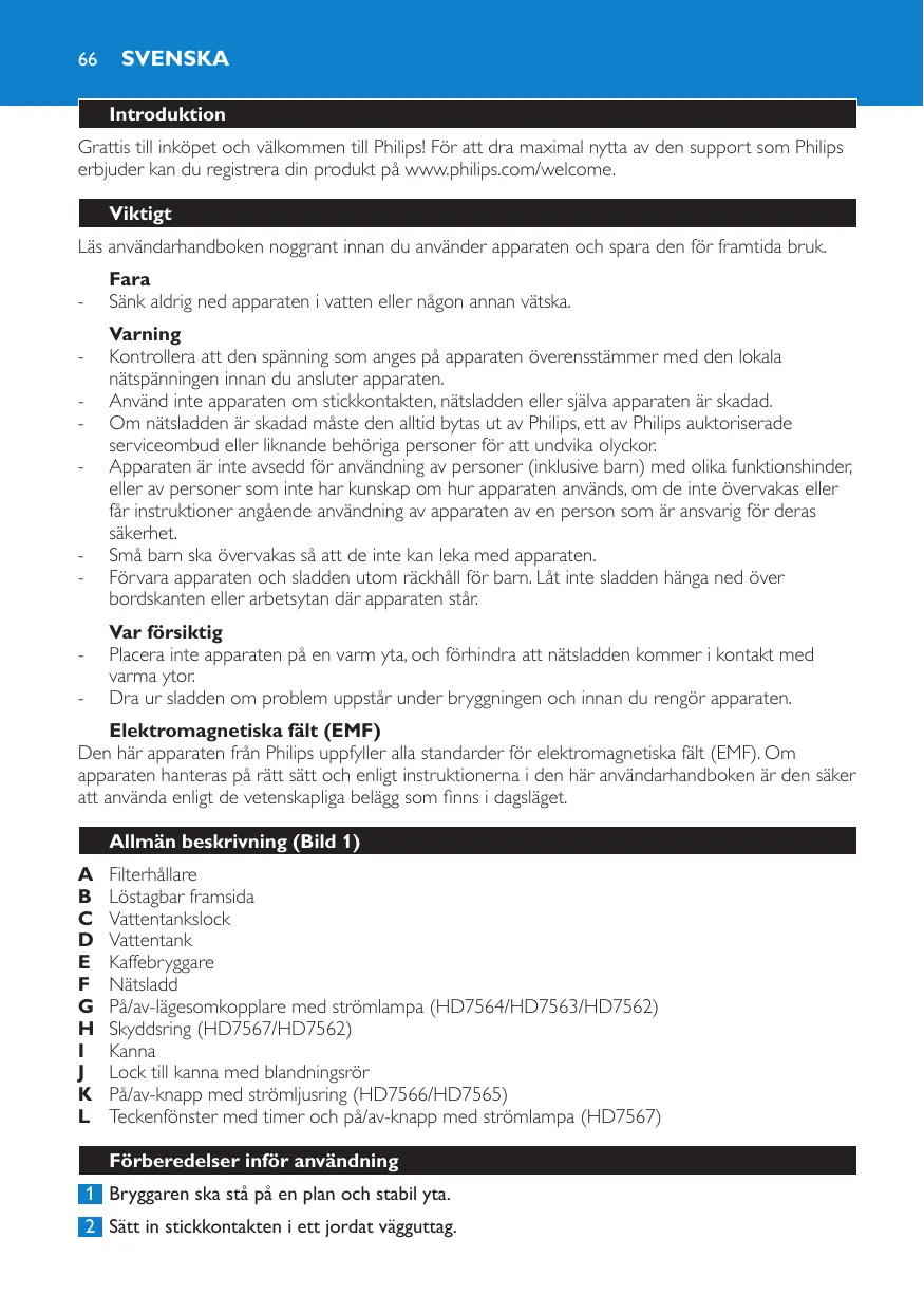 Téléchargez la notice de votre Kaffebryggare au format PDF gratuitement ! Retrouvez votre notice HD7567/20 - PHILIPS et reprennez votre appareil électronique en main. Sur cette page sont publiés tous les documents nécessaires à l'utilisation de votre appareil HD7567/20 de la marque PHILIPS.