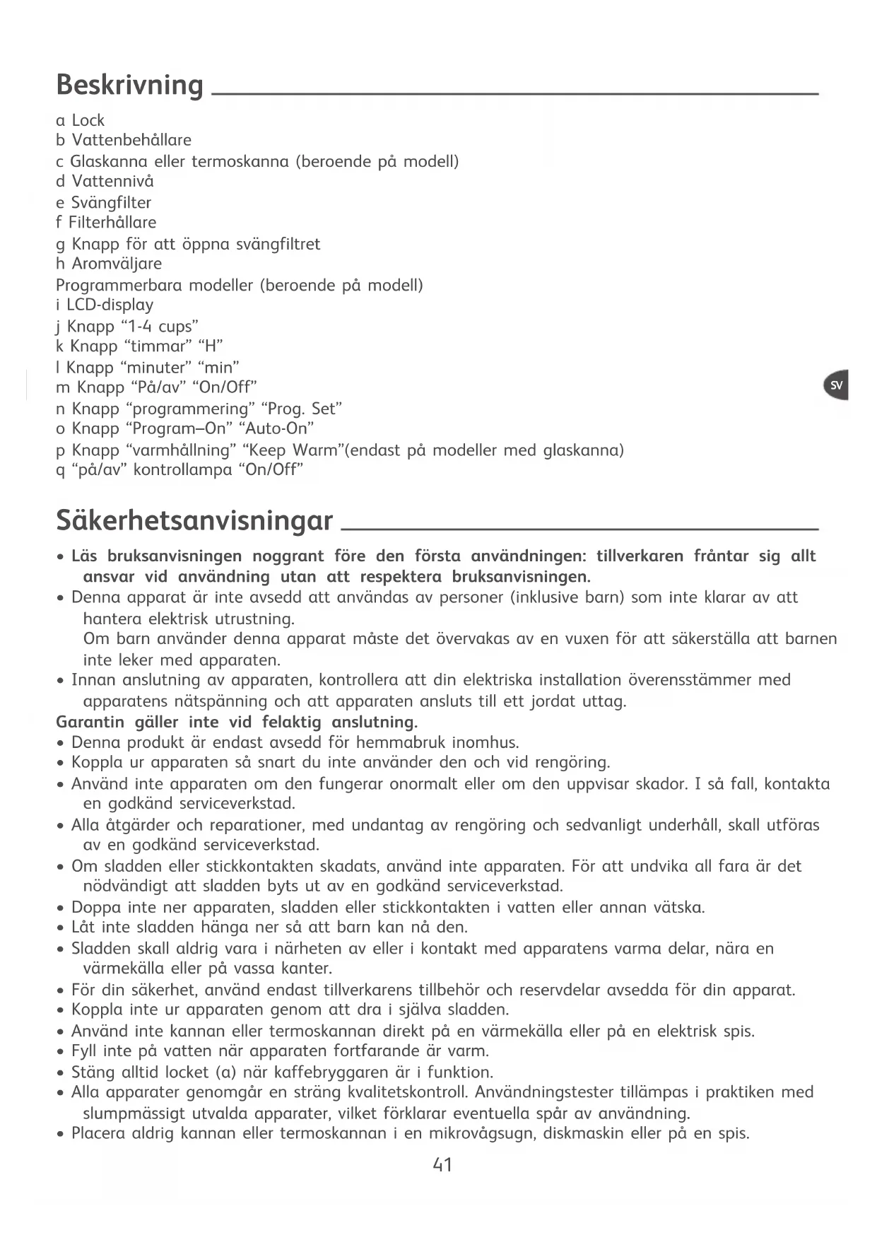 - Filterhållaren kan diskas i diskmaskin.