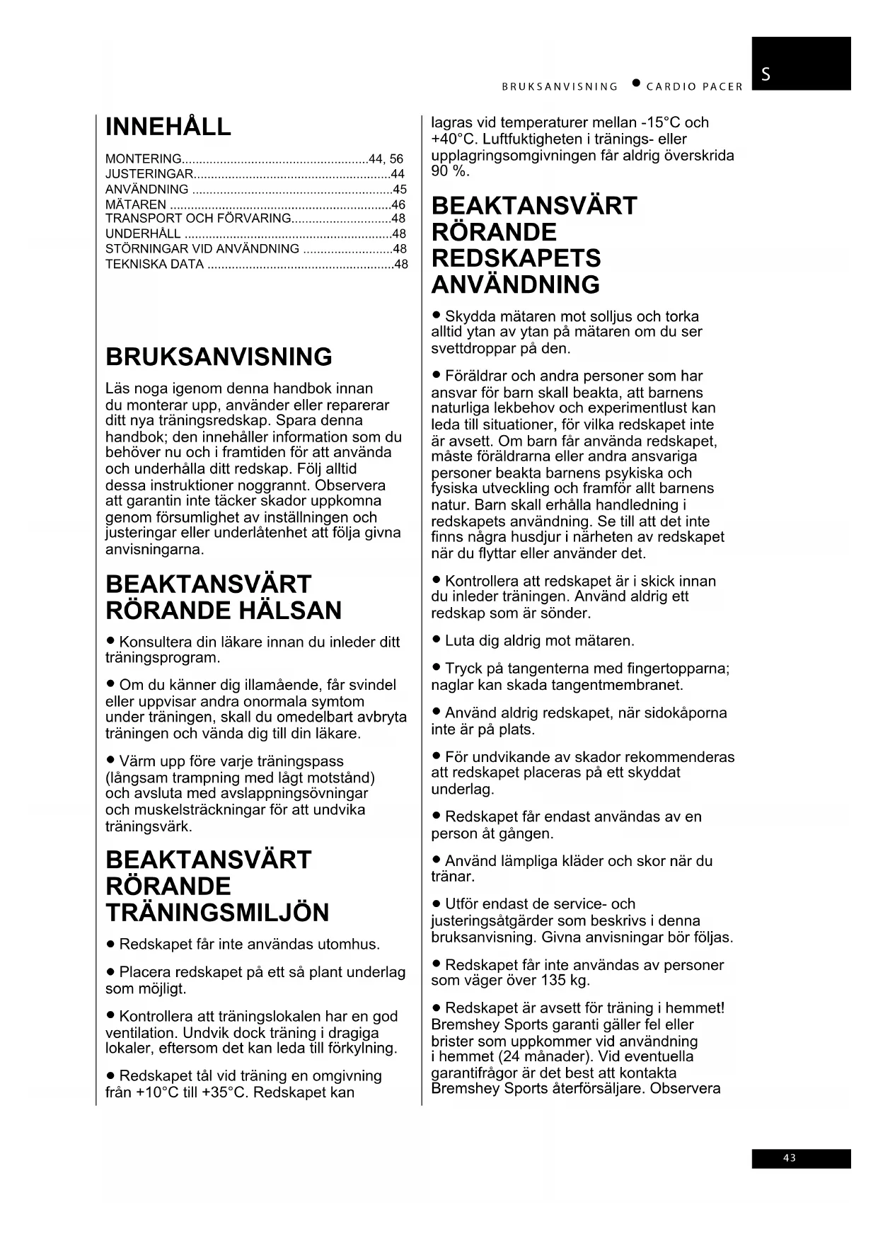 Hitta enhetens manual gratis Cardio Pacer Bremshey i PDF-format.