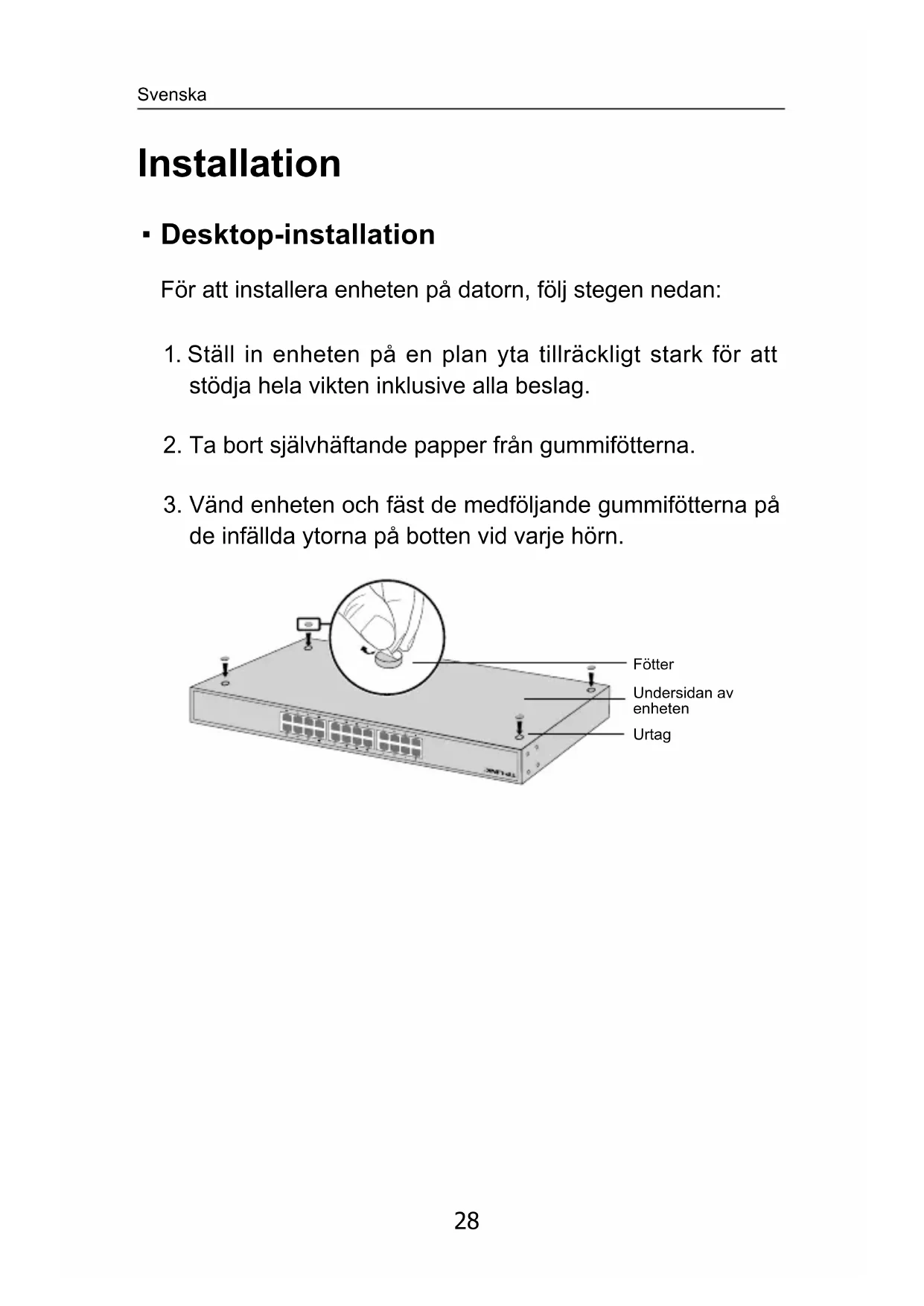de infällda ytorna på botten vid varje hörn. Fötter Undersidan av enheten Urtag Svenska29