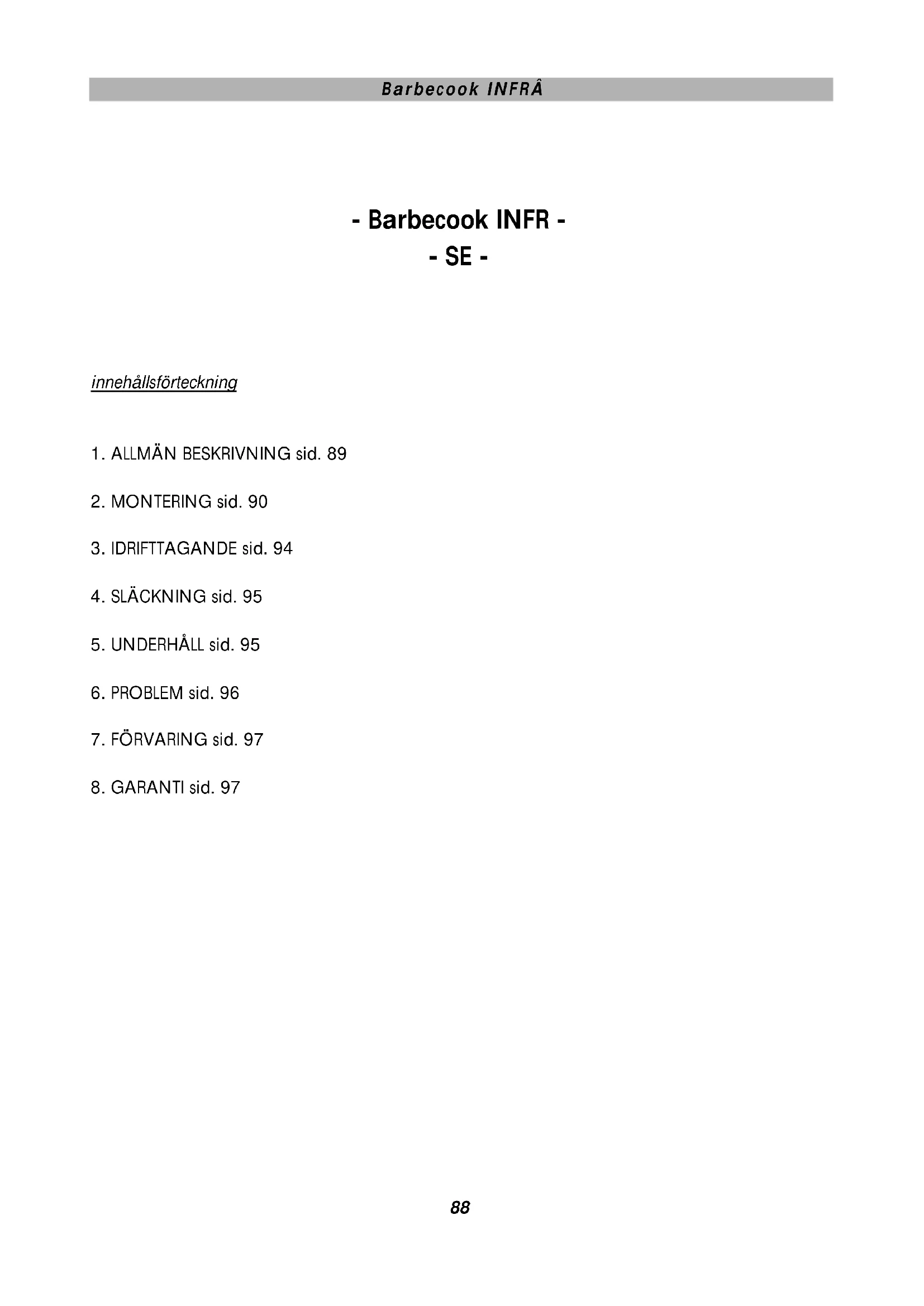 KONTAKTA BARBECOOK FÜR ATT FÄ EN NY BRUKSANVISNING OM DEN SKADAS ELLER TAPPAS BORT!