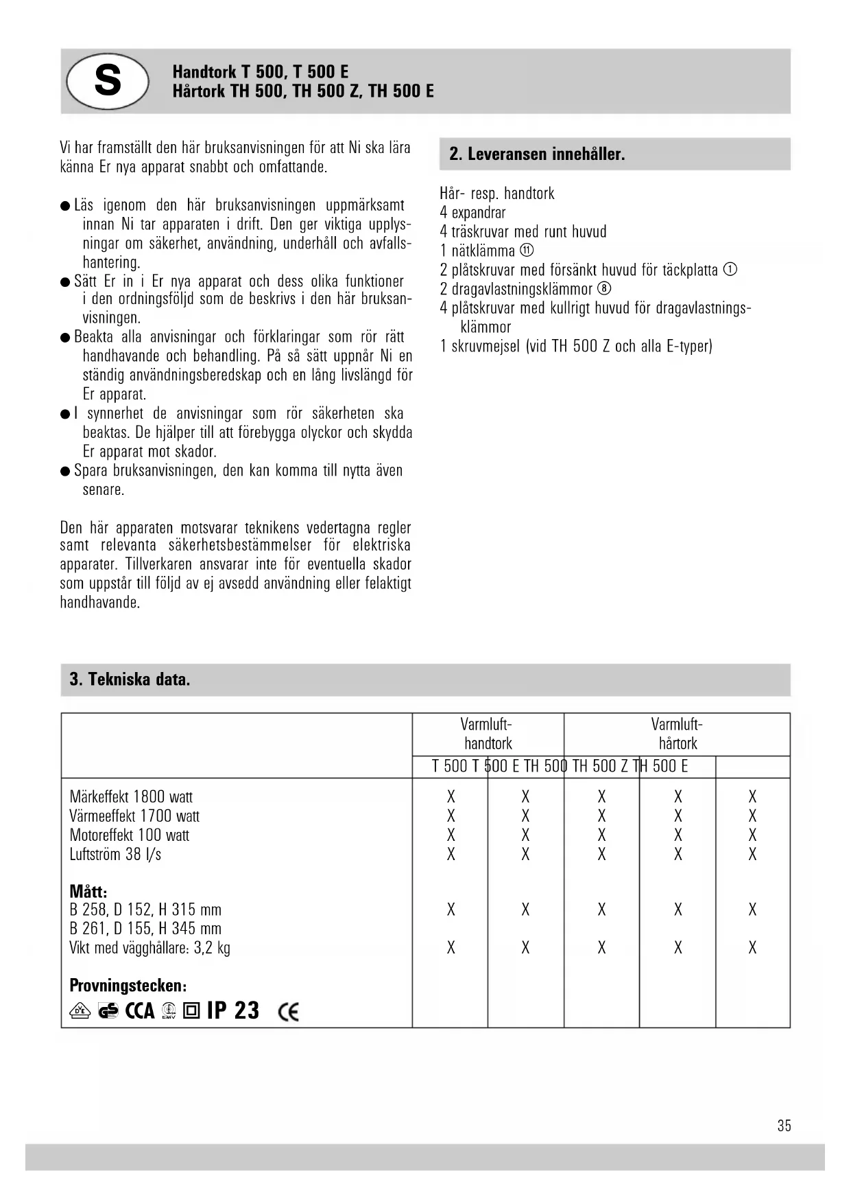 Ladda ner instruktionerna för din Handtork i PDF-format gratis! Hitta din manual T 500 - Starmix och ta tillbaka ditt elektroniska enhet i hand. På denna sida publiceras alla dokument som behövs för att använda din enhet. T 500 av märket Starmix.