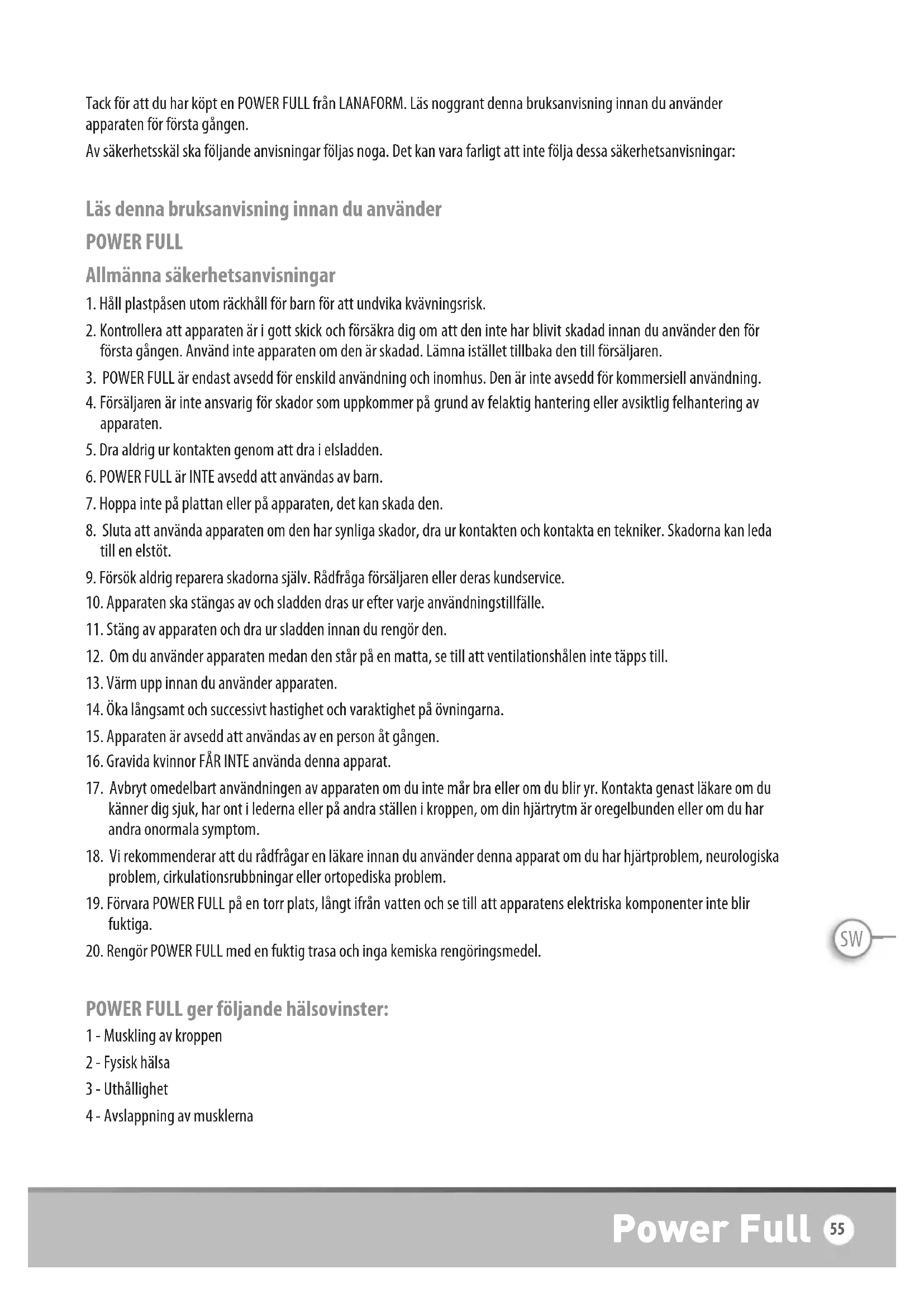 Power Full 55SW För att dra maximal nytta av din POWER FULL bör du tänka på följande saker: