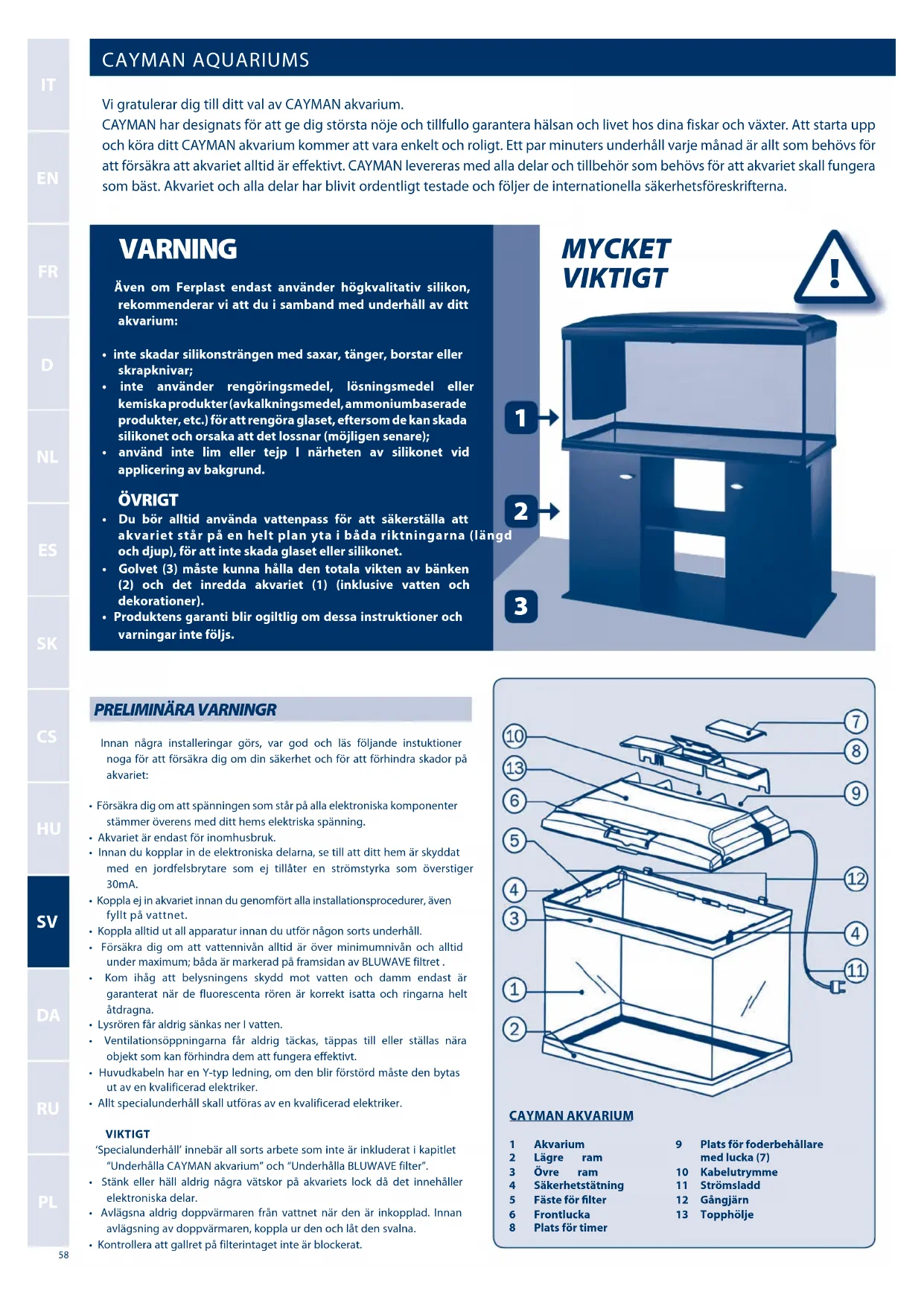 Vi gratulerar dig till ditt val av CAYMAN akvarium.