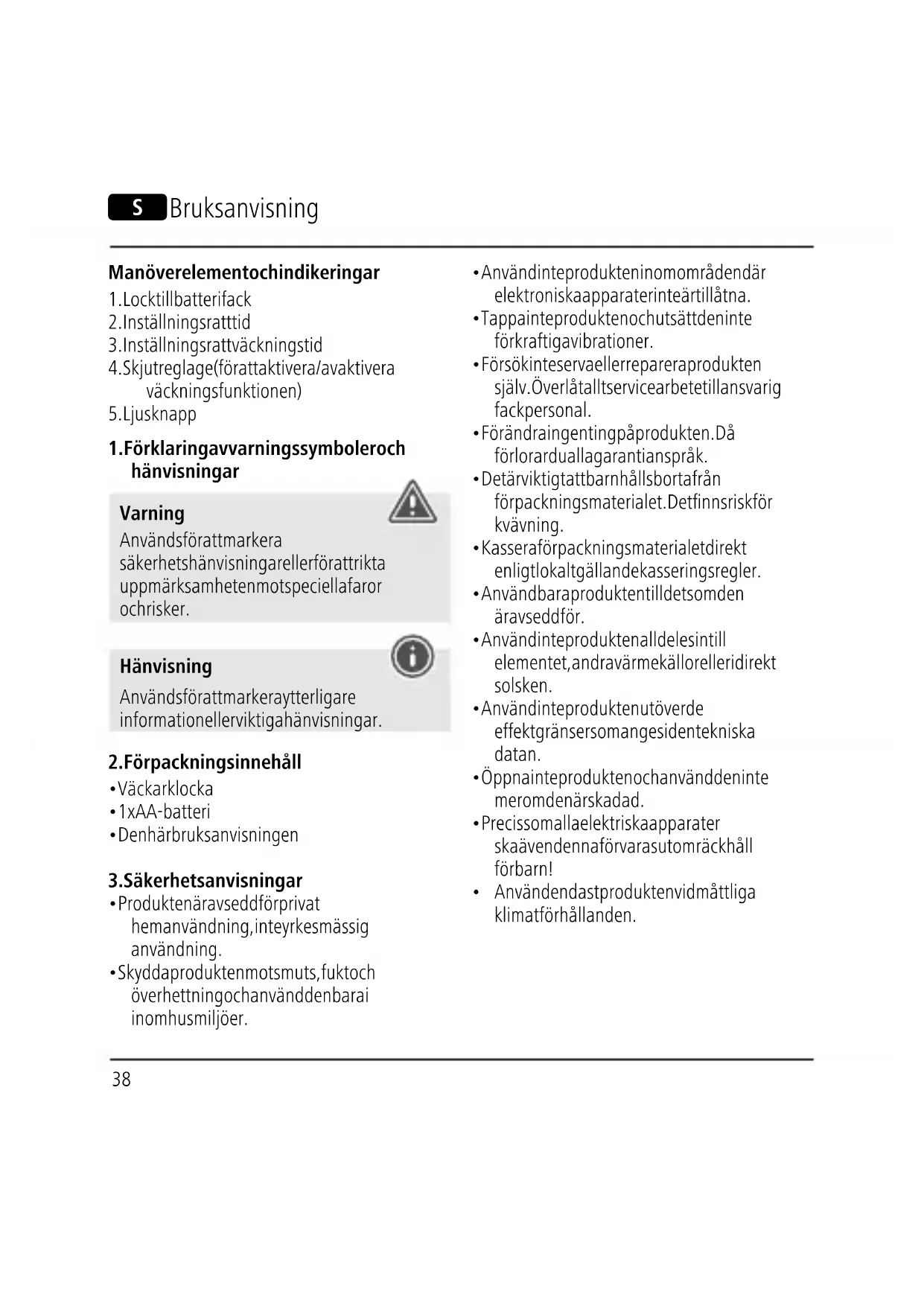 Använd endast produkten vid måttliga klimatförhållanden. S Bruksanvisning39 Varning – Batterier