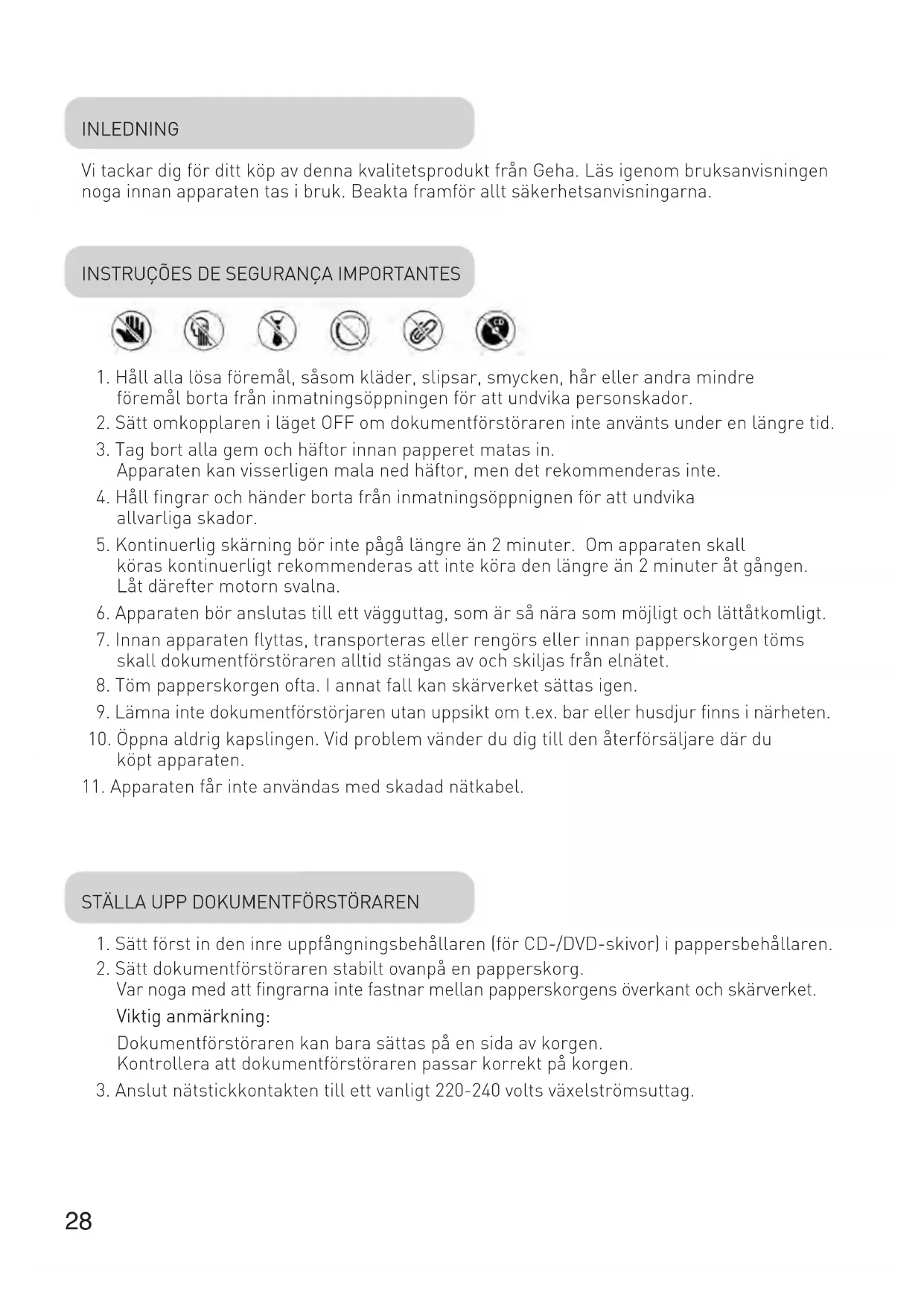 Ladda ner instruktionerna för din Pappersförstörare i PDF-format gratis! Hitta din manual Home & Office X7 CD - GEHA och ta tillbaka ditt elektroniska enhet i hand. På denna sida publiceras alla dokument som behövs för att använda din enhet. Home & Office X7 CD av märket GEHA.